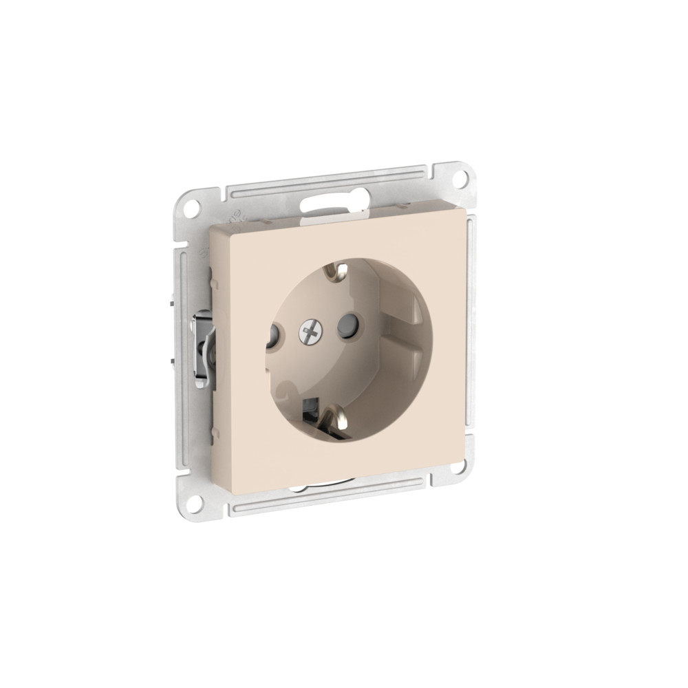 Механизм с быстрозажимными клеммами розетки с заземления со штороками Systeme Electric (ранее Schneider Electric) серии AtlasDesign в бежевом цвете подходит для сетей 250 В, на ток 16 А. С помощью новых быстрозажимных клемм монтаж розеток и выключателей стал намного быстрее. Теперь подключение не требует использования отвертки.