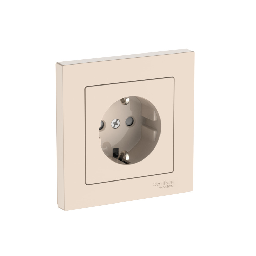 Механизм с быстрозажимными клеммами розетки с заземления со штороками в сборе Systeme Electric (ранее Schneider Electric) серии AtlasDesign в бежевом цвете подходит для сетей 250 В, на ток 16 А. С помощью новых быстрозажимных клемм монтаж розеток и выключателей стал намного быстрее. Теперь подключение не требует использования отвертки.