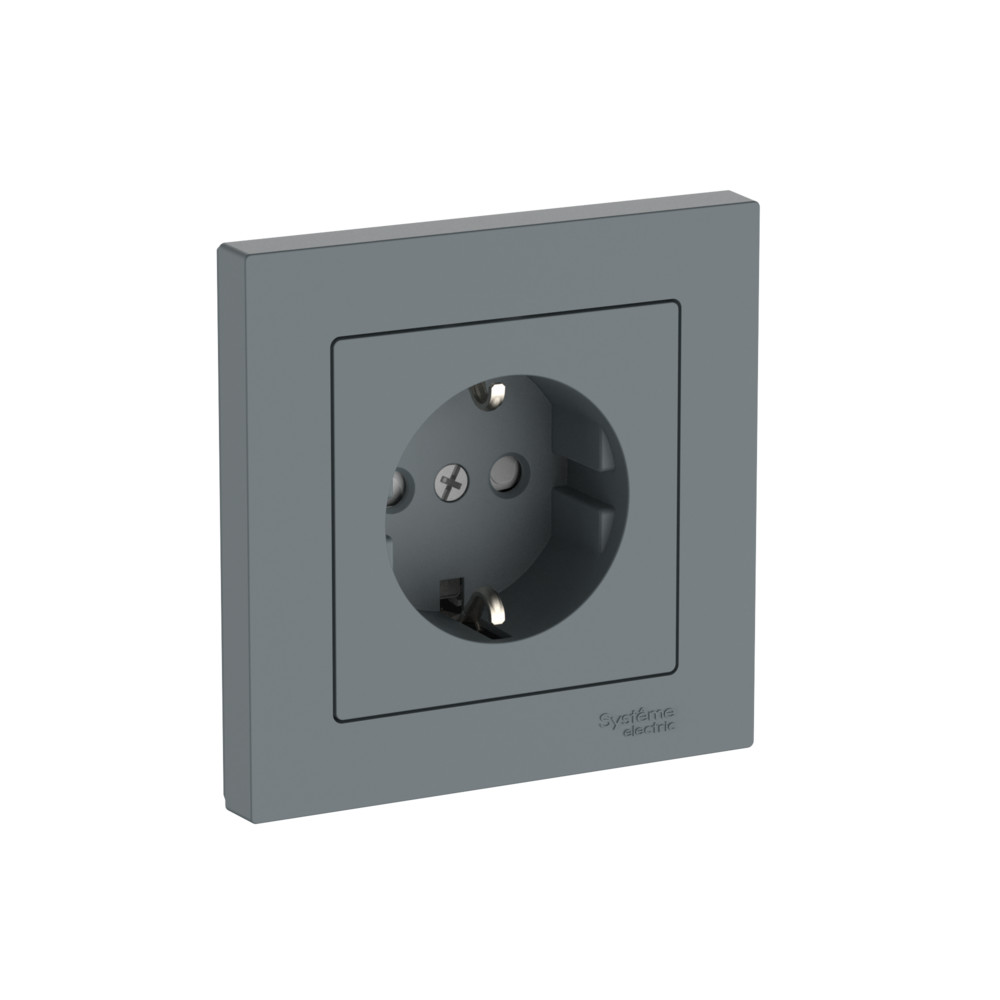 Механизм с быстрозажимными клеммами Systeme Electric (ранее Schneider Electric) серии AtlasDesign в цвете грифель розетки одинарной с заземлением и со штороками в сборе подходит для сетей 250 В, на ток 16 А. С помощью новых быстрозажимных клемм монтаж розеток и выключателей стал намного быстрее. Теперь подключение не требует использования отвертки.