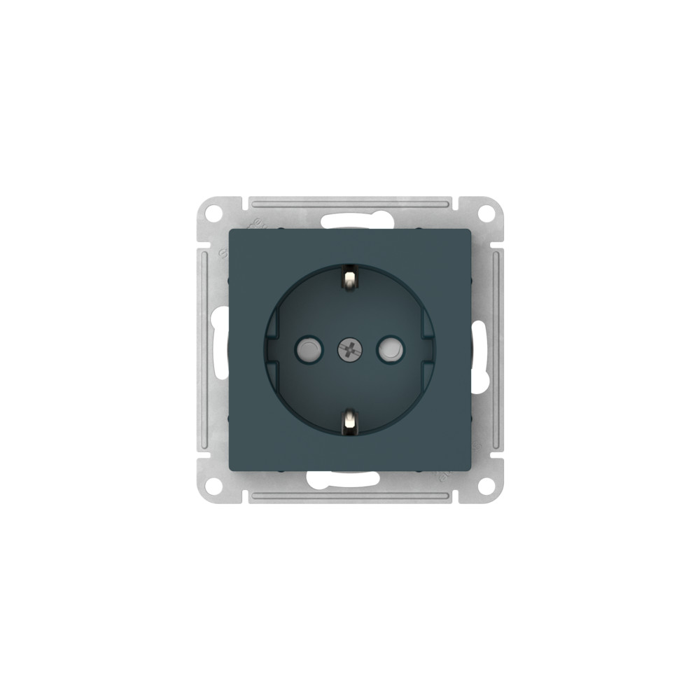 Механизм с быстрозажимными клеммами Systeme Electric (ранее Schneider Electric) серии AtlasDesign в цвете изумруд розетки одинарной с заземлением и со штороками подходит для сетей 250 В, на ток 16 А. С помощью новых быстрозажимных клемм монтаж розеток и выключателей стал намного быстрее. Теперь подключение не требует использования отвертки.
