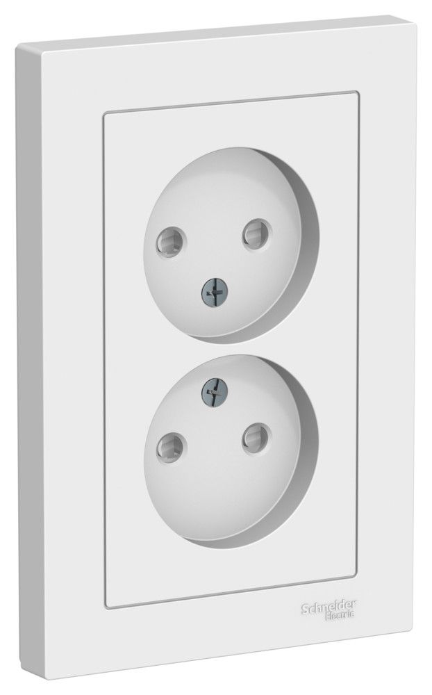 Розетка двойная Systeme Electric (ранее Schneider Electric) серии AtlasDesign (в сборе, цвет ЛОТОС) без заземления со шторками подходит для сетей 250 В, на ток 16 А.