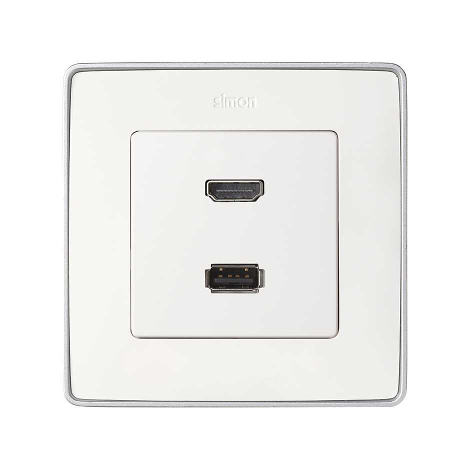 Simon 82 Накладка для розетки HDMI + USB 2.0 для передачи данных белого цвета от производителя Simon. Артикул производителя 8201095-030.
