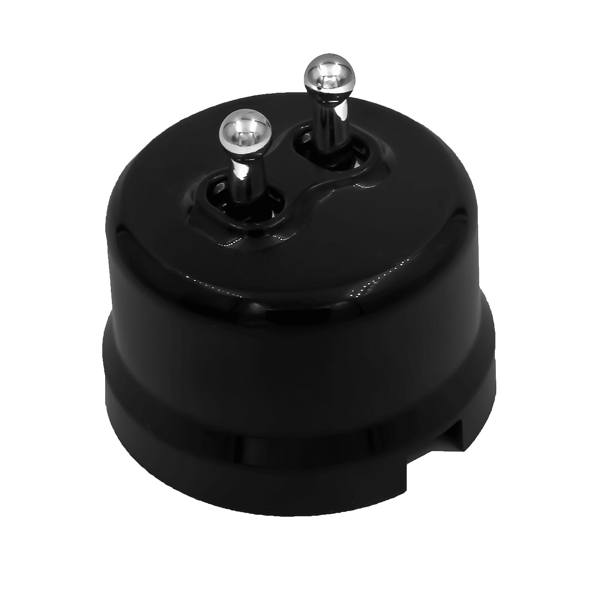 BIRONI Лизетта Пластик Черный Выключатель кнопочный 2-кл (тумблерный), ручка Серебро от производителя BIRONI. Артикул производителя B1-232-23-S-PB.