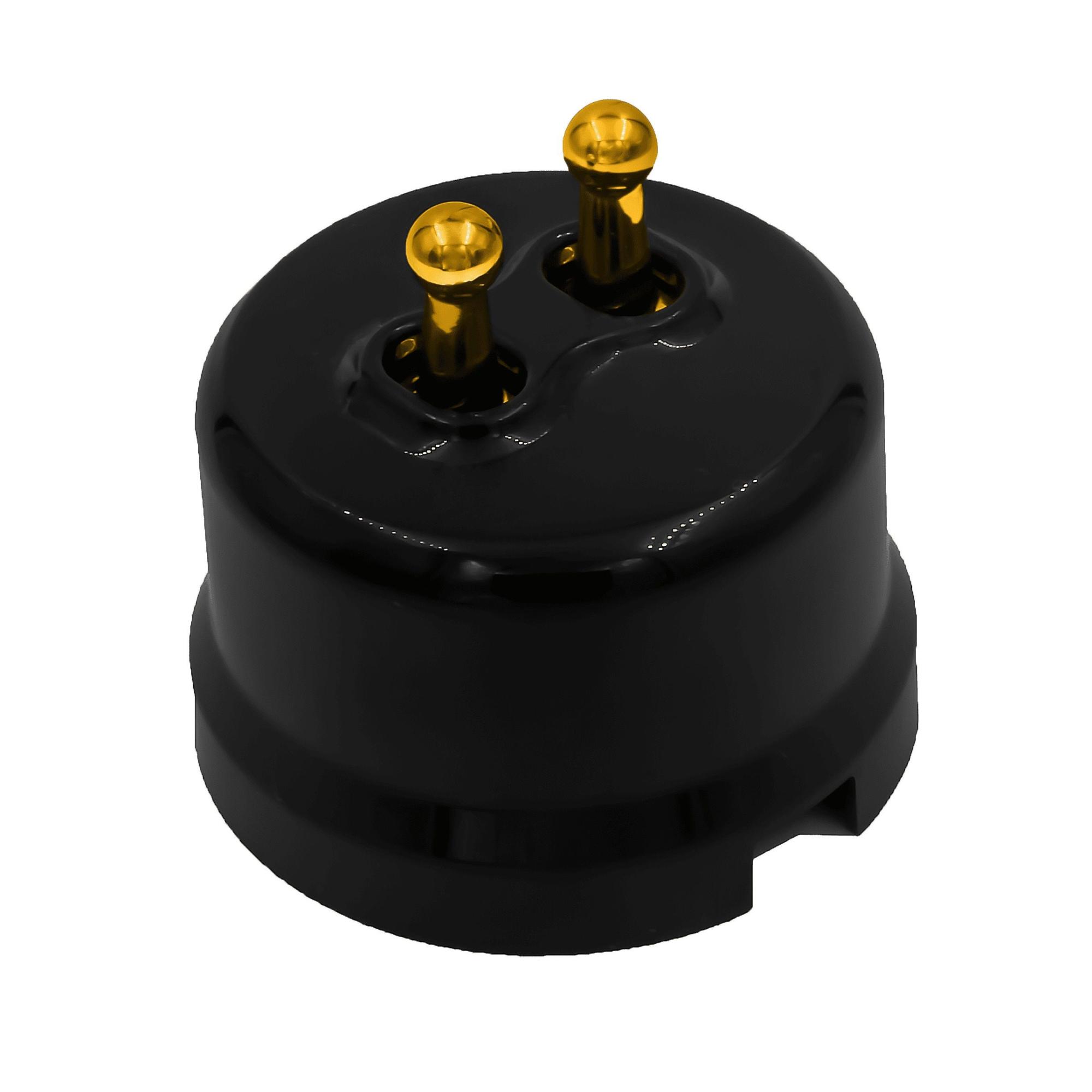 BIRONI Лизетта Пластик Черный Выключатель кнопочный 2-кл (тумблерный), ручка Золото от производителя BIRONI. Артикул производителя B1-232-23-G-PB.