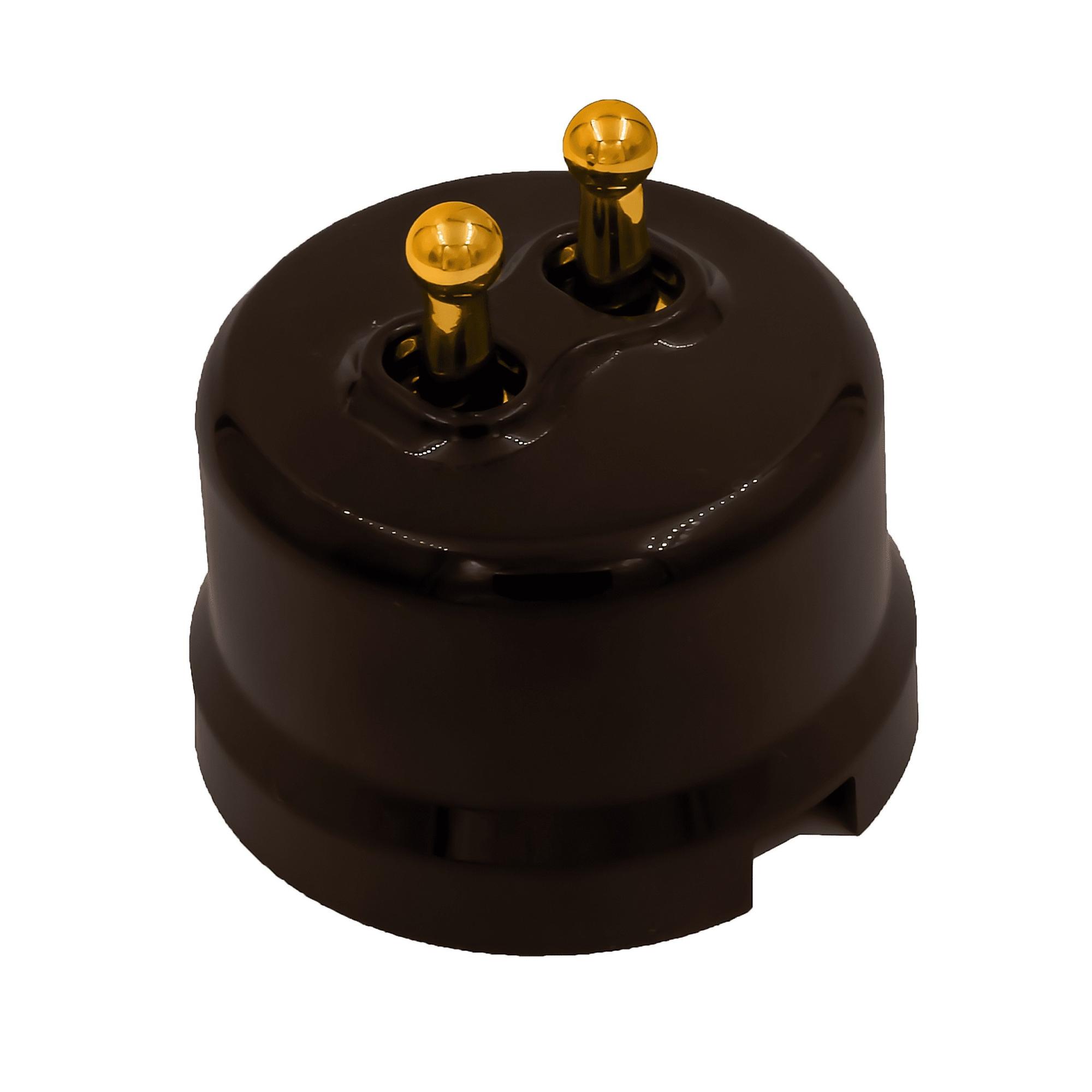 BIRONI Лизетта Пластик Коричневый Выключатель кнопочный 2-кл (тумблерный), ручка Золото от производителя BIRONI. Артикул производителя B1-232-22-G-PB.