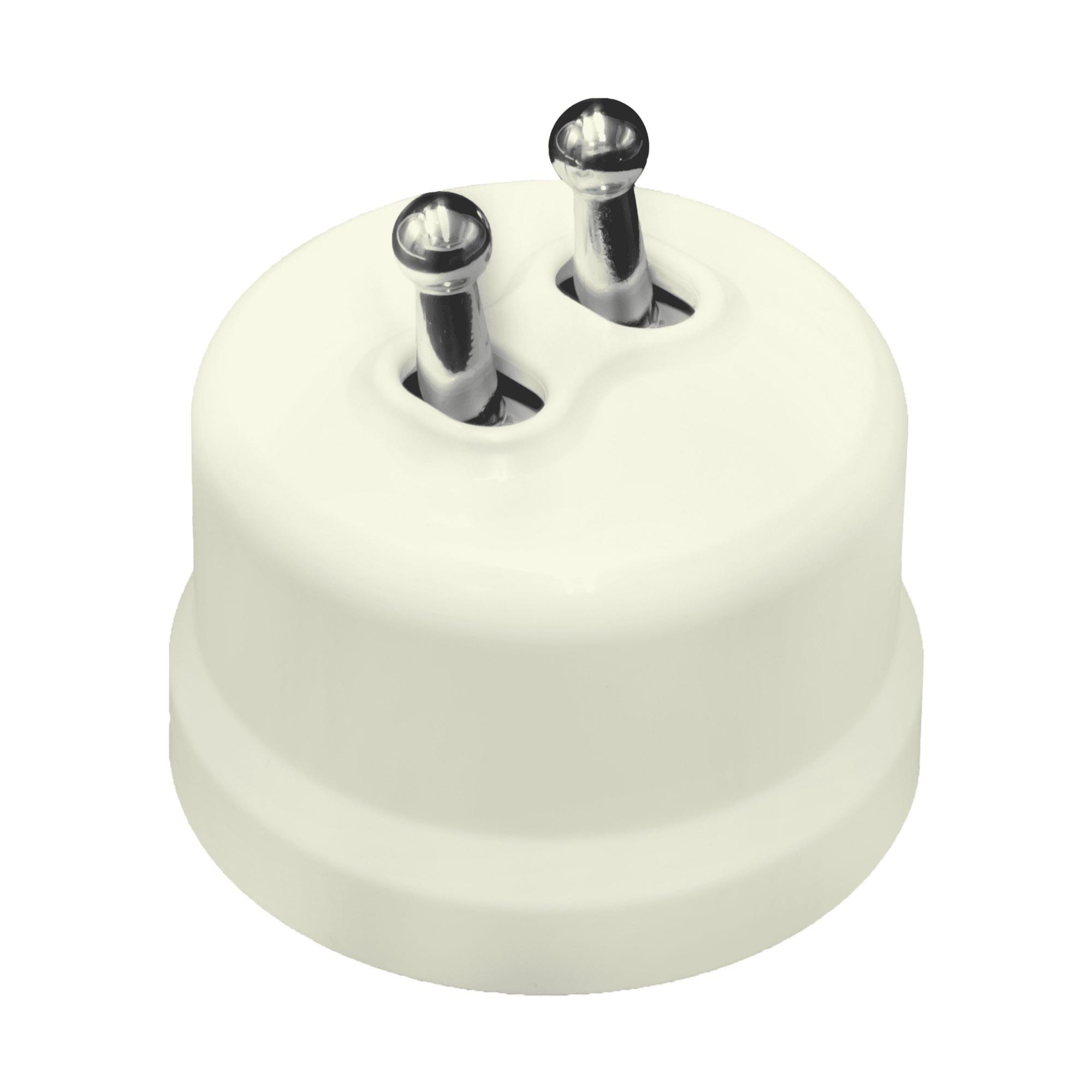 BIRONI Лизетта Пластик Слоновая кость Выключатель кнопочный 2-кл (тумблерный), ручка Серебро от производителя BIRONI. Артикул производителя B1-232-211-S-PB.