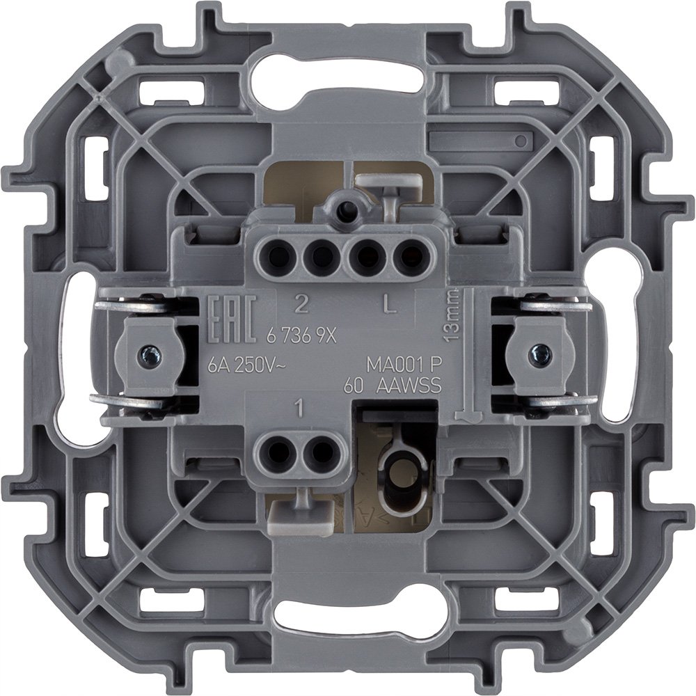 Переключатель кнопочный одноклавишный Legrand Inspiria для скрытого монтажа, номинальный ток 6 А, напряжение ~250В, цвет "Слоновая кость". Предназначен для установки в электрических сетях жилых и общественных зданий и используется для импульсного управления электрическими звонками, реле, контакторами, светорегуляторами и т.д. Особенности изделия: - Компактный механизм с глубиной всего 20 мм. комфортно размещается в различных монтажных коробках. - Материал клавиши - глянцевый пластик АБС, стоек к выгоранию и загрязнениям. - Все токоведущие части выключателя имеют защиту от случайного прикосновения. - Безвинтовые зажимы для присоединения проводов обеспечивают быстрое подключение и отключение, гарантируют надежное и долговечное соеднинение и не требуют обслуживания. - Удобные широкие толкатели облегчают работу по демонтажу провода. - Улучшенная эргономика снижает вероятность искрения при коммутации светодиодов. - Ход клавиши короткий, не громкий.