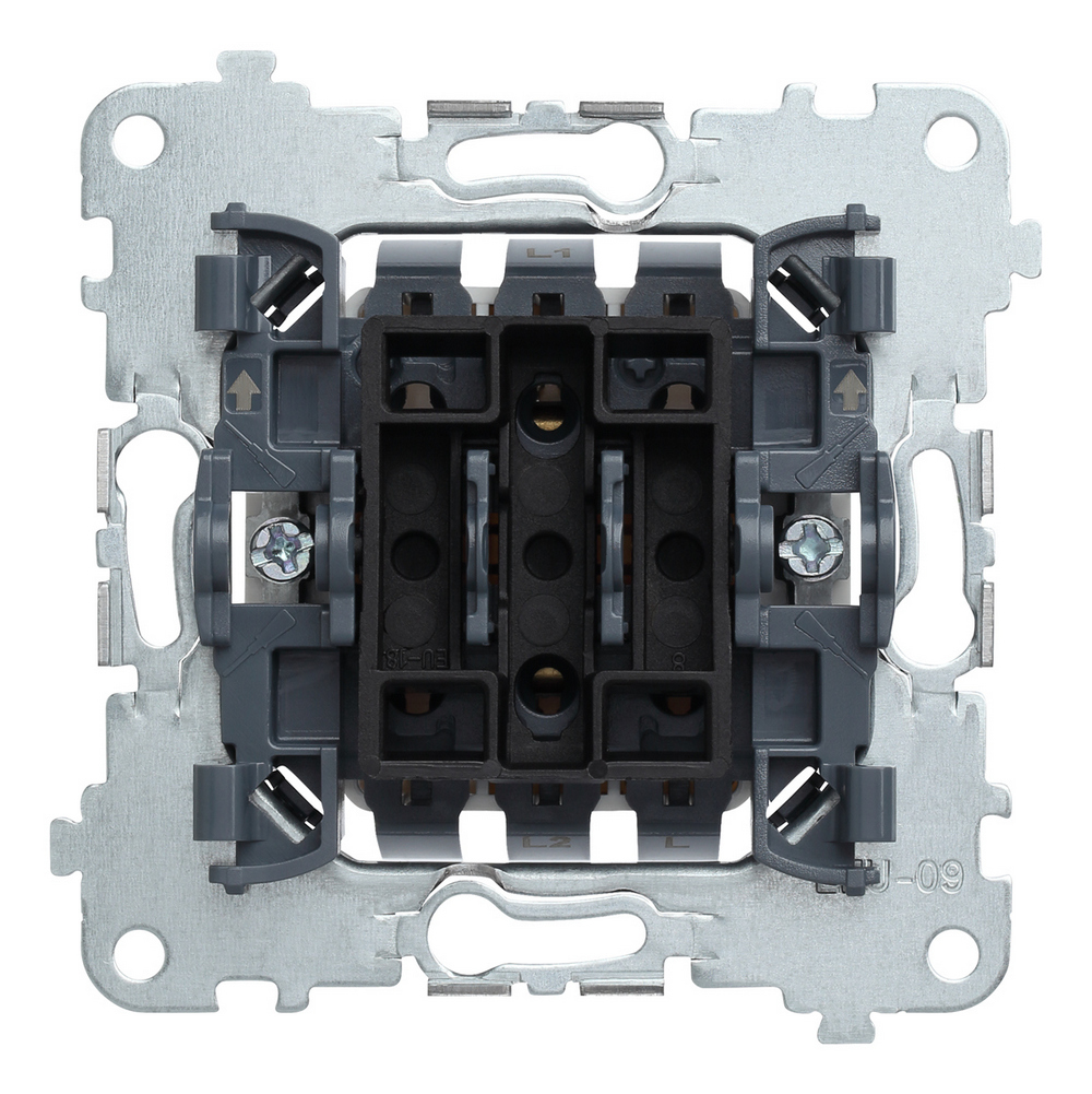Механизм одноклавишной кнопки, 250 В, 10 А, подключение безвинтовое, для установки в стандартный подрозетник. Для подстветки используется светодиодная лампа арт. 32019 голубого цвета, защелкивается с фронтальной стороны выключателя. Клавиши - арт. 35601 и 35602.
