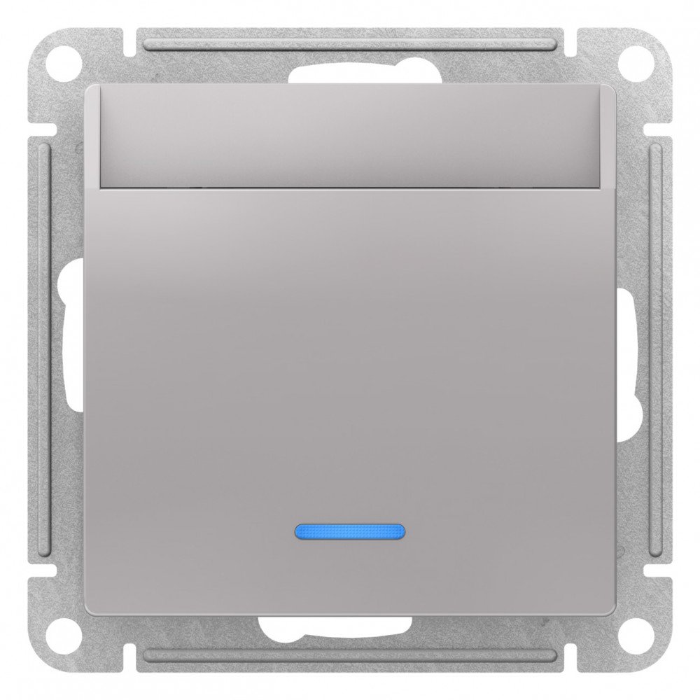 Выключатель Systeme Electric (ранее Schneider Electric) серии AtlasDesign в цвете алюминий карточный подходит для сетей 250 В, на ток 10 А.