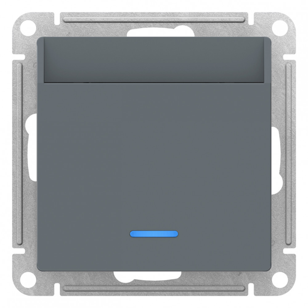 Выключатель Systeme Electric (ранее Schneider Electric) серии AtlasDesign в цвете грифель карточный подходит для сетей 250 В, на ток 10 А.