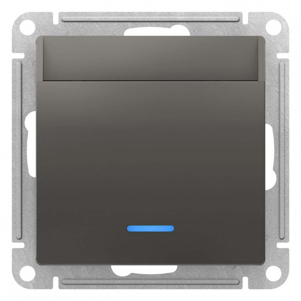Выключатель Systeme Electric (ранее Schneider Electric) серии AtlasDesign в цвете сталь карточный подходит для сетей 250 В, на ток 10 А.