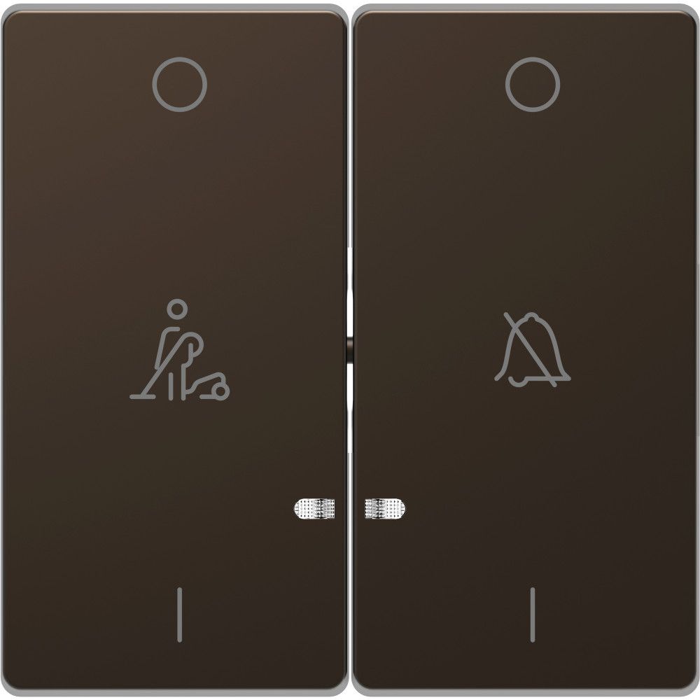 Клавиша Schneider Electric Merten серии D-Life (мокко) двойная с пиктограммами «перечеркнутый звонок/горничная» предназначена для механизмов двухклавишного выключателя или кнопочного выключателя.