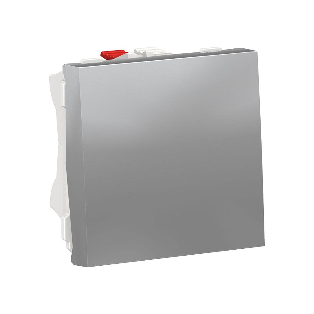 Выключатель одноклавишный Schneider Electric UNICA MODULAR (алюминий) двухмодульный кнопочный без подсветки предназначен для сетей до 250 В на ток до 10 А.
