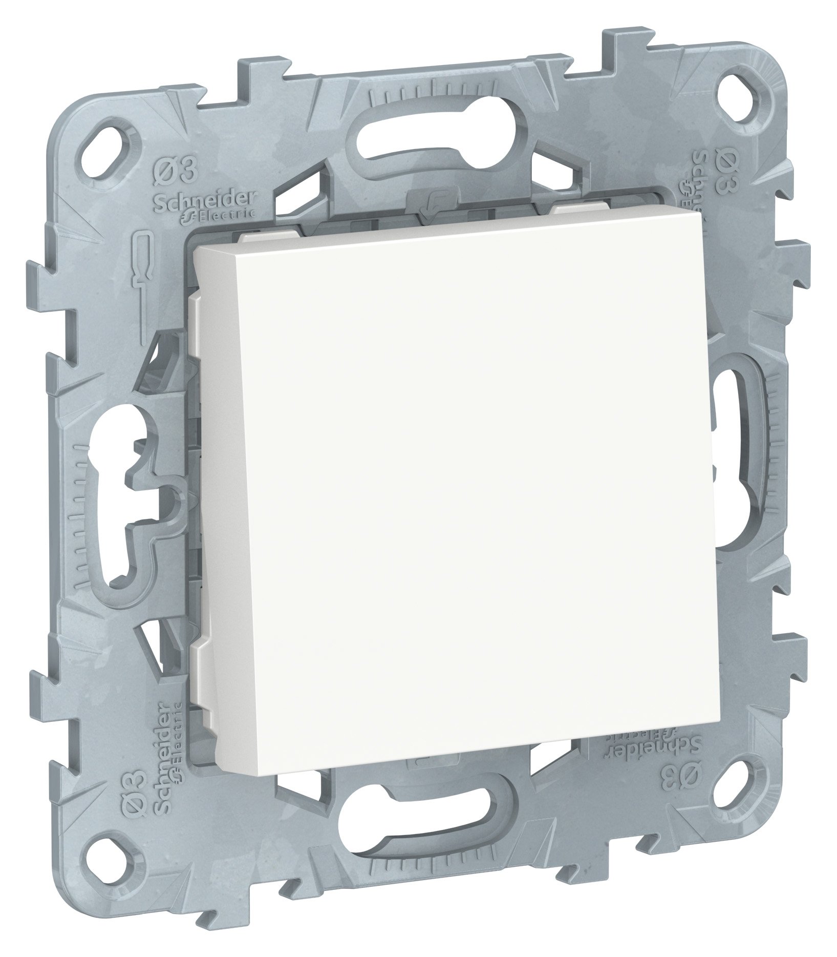Выключатель одноклавишный Schneider Electric UNICA NEW (белый) кнопочный без подсветки предназначен для сетей до 250 В на ток до 10 А.