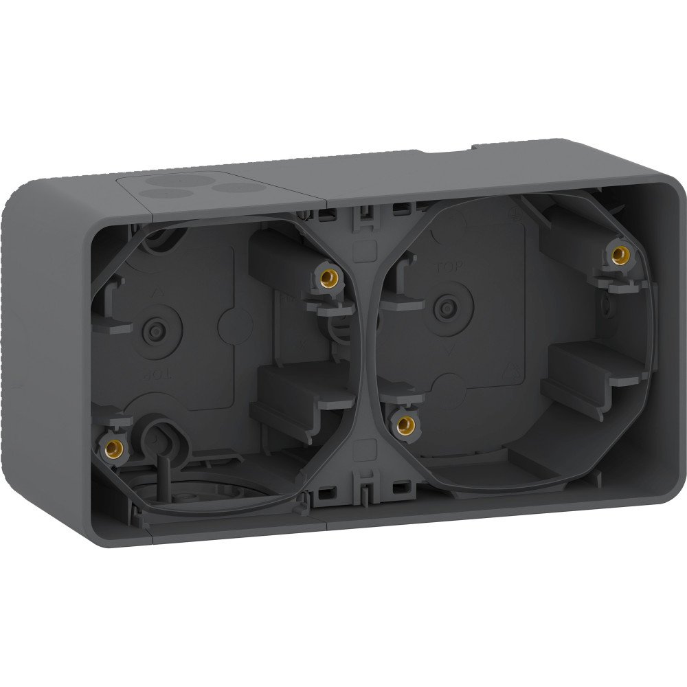 MUREVA S, 2-х ПОСТОВОЙ БОКС для накл. монтажа, АНТРАЦИТ, IP55. тип устройства или его аксессуаров: короб для установки на поверхности. Преимущества: Работоспособность: Пыле-влагозащита по стандарту IP55 означает, что Mureva Styl защищена от попадания воды и пыли внутрь механизмов... Простота установки: Монтаж Mureva Styl достаточно прост благодаря продуманному дизайну креплений. Инновационный и интуитивный дизайн креплений основывается на продвинутой эргономике, минимуме частей, которые вщёлкиваются в устройства, и щедром количестве пространства, которое помогает удобно располагать провода.... применения: Надежная серия Mureva Styl отлично подходит для внешних сред, где основным. фактором являются жесткие условия. Интегрированная защита и lt;!-- /* Font Definitions */ @font-face (font-family: и quot;Cambria Math и quot;; panose-1: 2 4 5 3 5 4 6 3 2 4; mso-font-charset: 1; mso-generic-font-family: roman; mso-font-pitch: variable; mso-font-signature: 0 0 0 0 0 0;) @font-face (font-family: Calibri; panose-1: 2 1