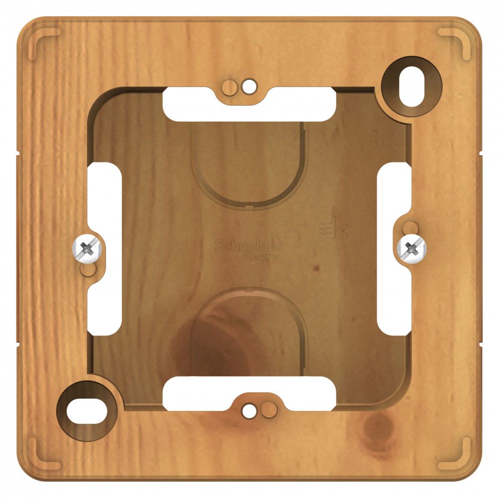 Коробка Systeme Electric (ранее Schneider Electric) BLANCA (ясень) подъемная, однопостовая предназначена для наружного монтажа электроустановочных изделий серии Blanca. Коробка рассчитана на установку розетки до 32 А. Изделия цвета Ясень обладают уникальным рисунком, напоминающим древесный сруб. Имеется возможность соединения нескольких коробок. Размеры коробки: 86*86*34 мм.
