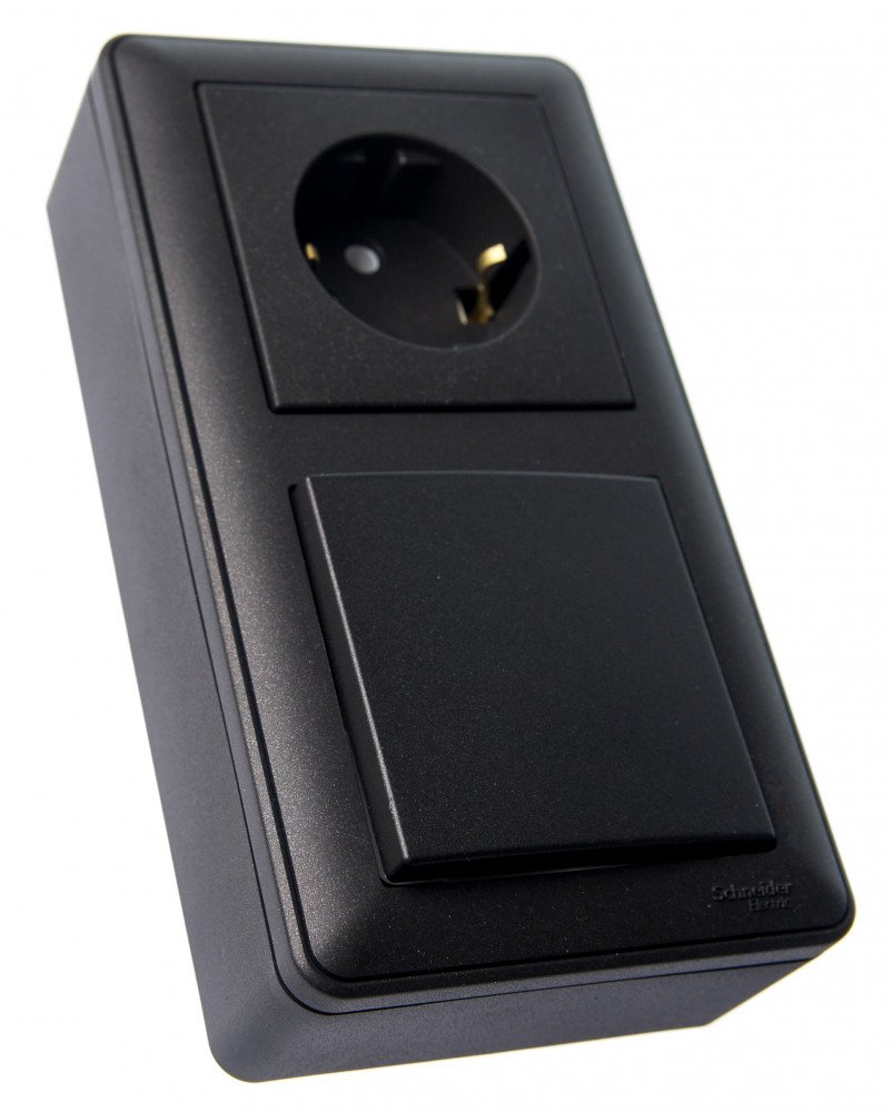 Коробка Systeme Electric (ранее Schneider Electric) W59 (цвет чёрный бархат) двухместная подъемная с рамками для открытого монтажа.