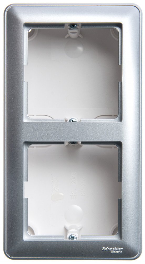 Коробка Systeme Electric (ранее Schneider Electric) W59 (цвет матовый хром) двухместная подъемная с рамками для открытого монтажа.