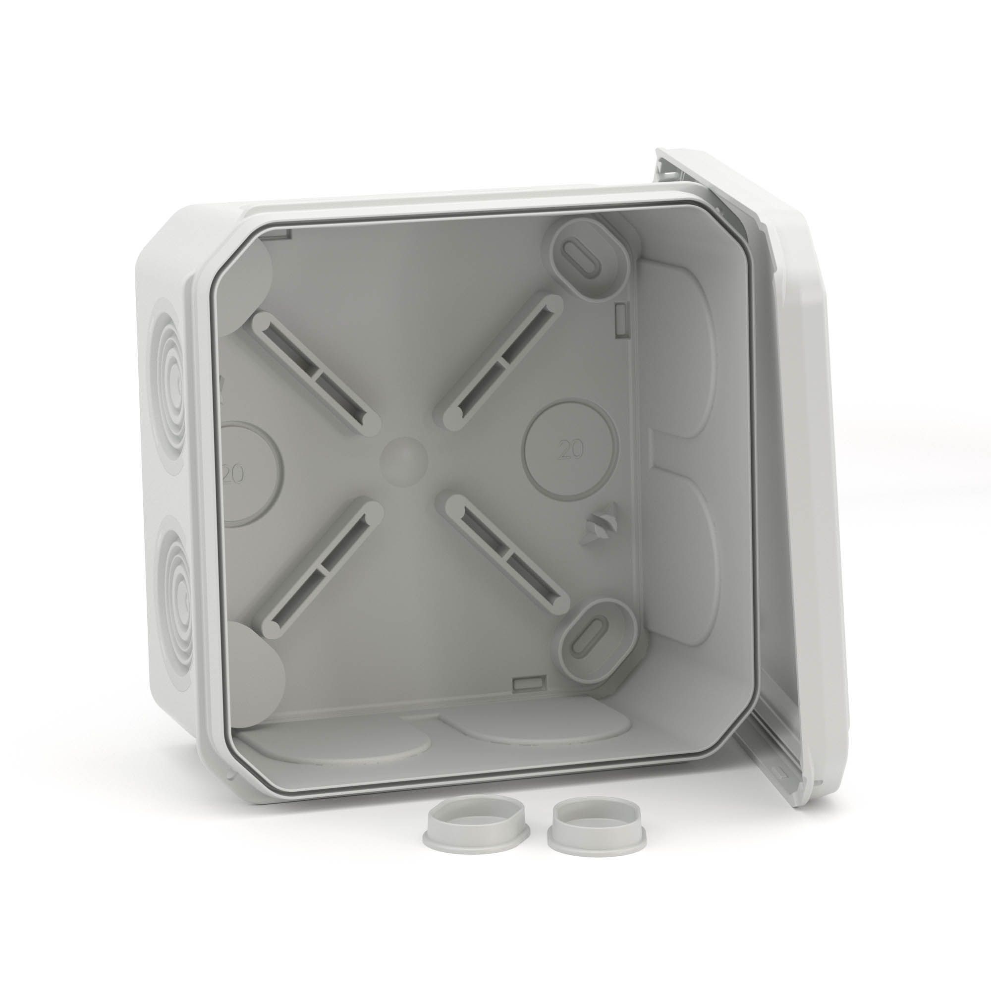 Ответвительная коробка квадратной формы с кабельными вводами применяется для защиты и эстетичного оформления мест соединения кабелей (информационных, осветительных, силовых). Коробка имеет 6 кабельных вводов-сальников, предназначенных для кабеля с максимальным диаметром 25 мм. Ответвительная коробка обеспечивает повышенный уровень пыле- и влагозащиты IP 55. Параметры коробки: 100x100 мм, глубина 50 мм (внутренние размеры). Материал пластик. Ответвительные коробки можно устанавливать как в помещении, так и на открытом воздухе (при условии, что коробка будет защищена от воздействия прямых солнечных лучей и осадков). Цвет - серый. Температура эксплуатации: от 25 С до +60 С. Розничная упаковка