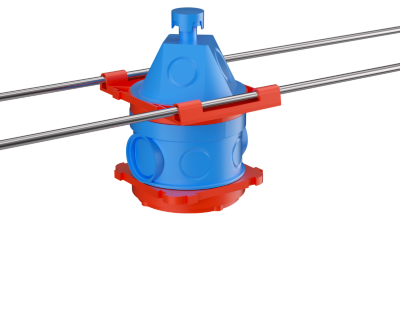 Универсальная потолочная коробка для заливки в бетон применяется, чтобы сделать разводку кабеля и закрепить осветительный прибор (при монолитном бетоностроении). Аксессуар монтируется к арматурному каркасу с помощью прутка. Параметры коробки: 90х71х114 мм.