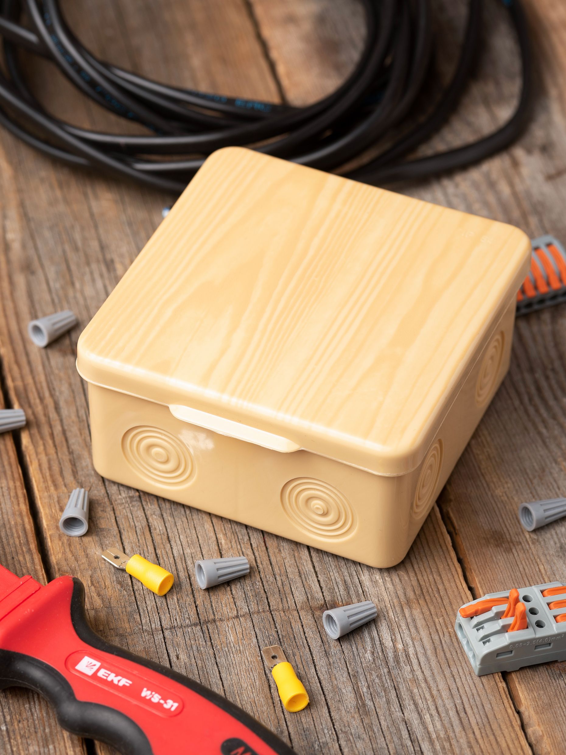 EKF PROxima Коробка распаячная КМР-030-034 пылевлагозащищенная без мембранных вводов (100х100х55) светлое дерево