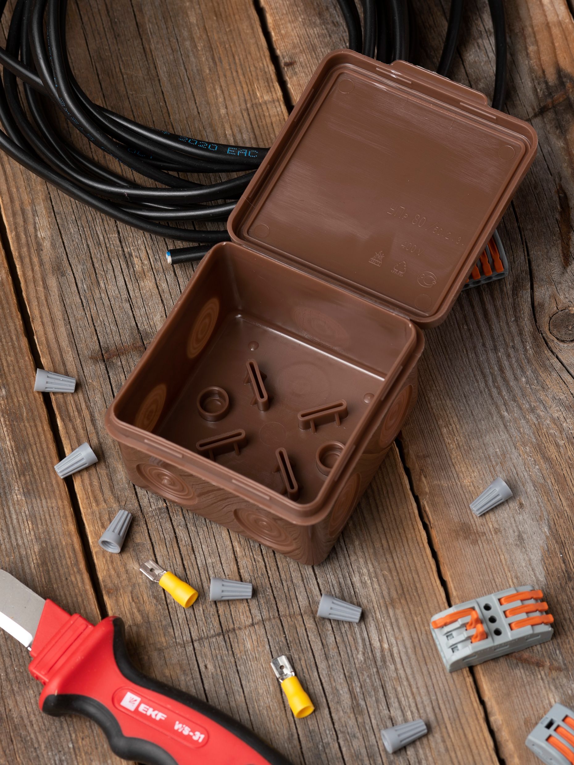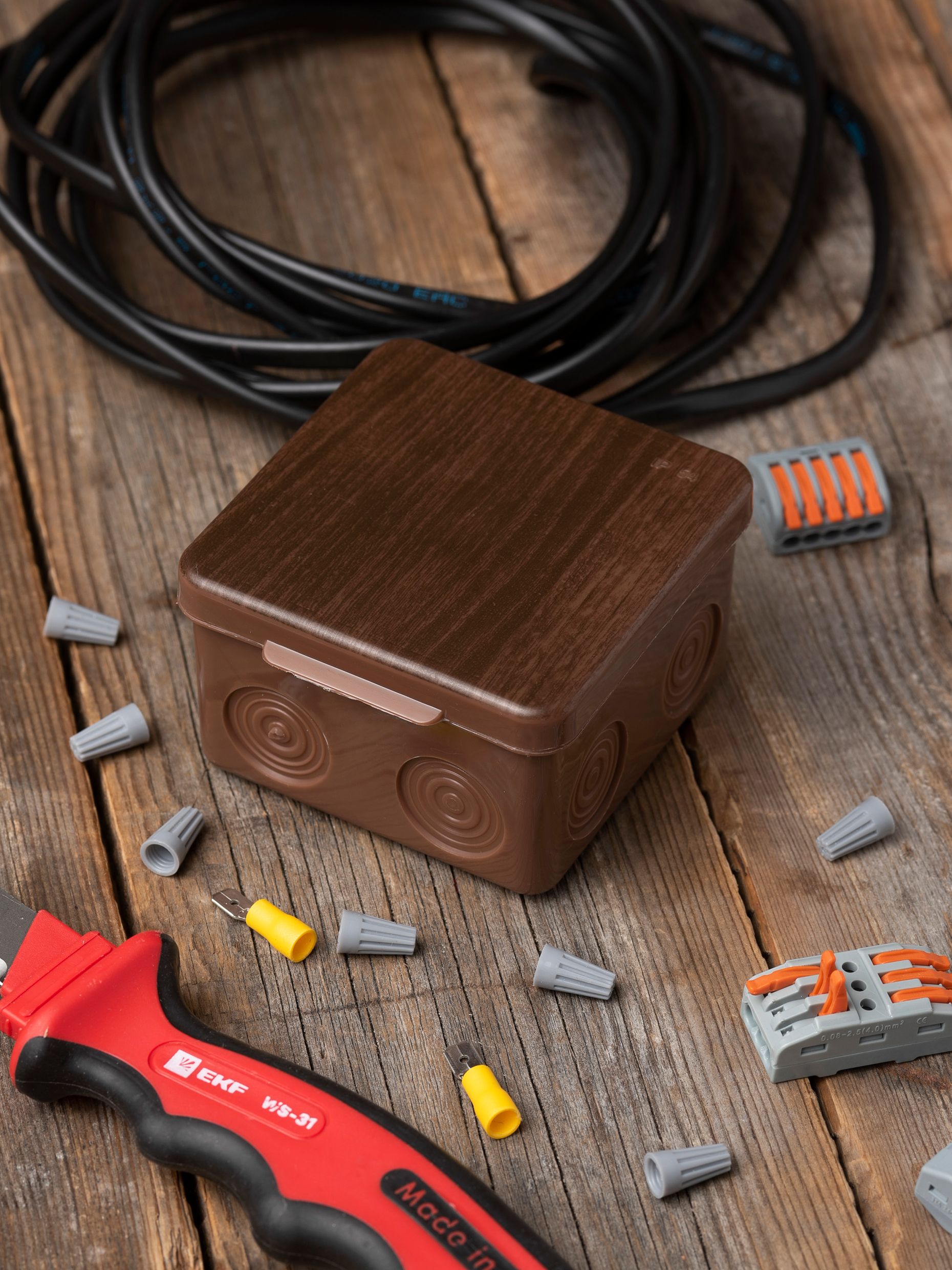 Монтажные коробки предназначены для создания длительной, безопасной и контролируемой установки проводки, телефонных стыков, розеток, выключателей, регуляторов освещенности и устройств связи. Помимо того, что самая важная функция монтажных коробок заключается в защите соединений жил кабелей от внешних воздействий, монтажные коробки применяют для создания эстетического вида интерьеров и фасадов, - именно поэтому компания EKF выпустила специальную серию монтажных коробок под светлое и темное дерево. Распаечные коробки данной серии незаменимы для интерьеров, в которых используются элементы дерева или его имитация. Монтажные коробки предназначены для создания длительной, безопасной и контролируемой установки проводки, телефонных стыков, розеток, выключателей, регуляторов освещенности и устройств связи. Помимо того, что самая важная функция монтажных коробок заключается в защите соединений жил кабелей от внешних воздействий, монтажные коробки применяют для создания эстетического вида интерьеров и фасадов, - именн