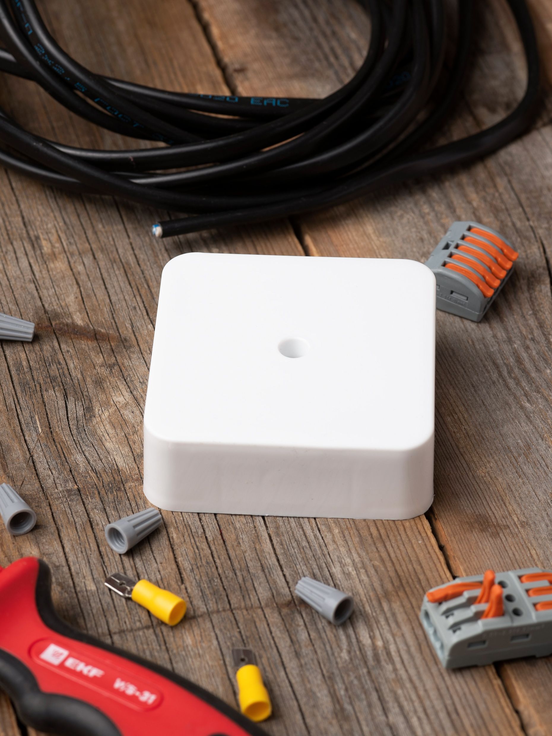 —EKF PROxima Коробка разветвительная KMP-030-030 наружная (75х75х26) белая, арт plc-kmr-030-030
