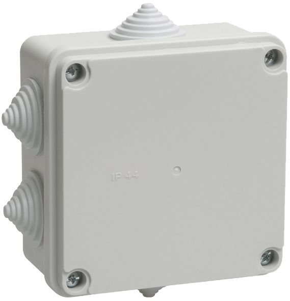 —IEK Коробка КМ41233 распаячная для о/п 100х100х50мм IP44 (RAL7035, 6 гермовводов), арт UKO11-100-100-050-K41-44