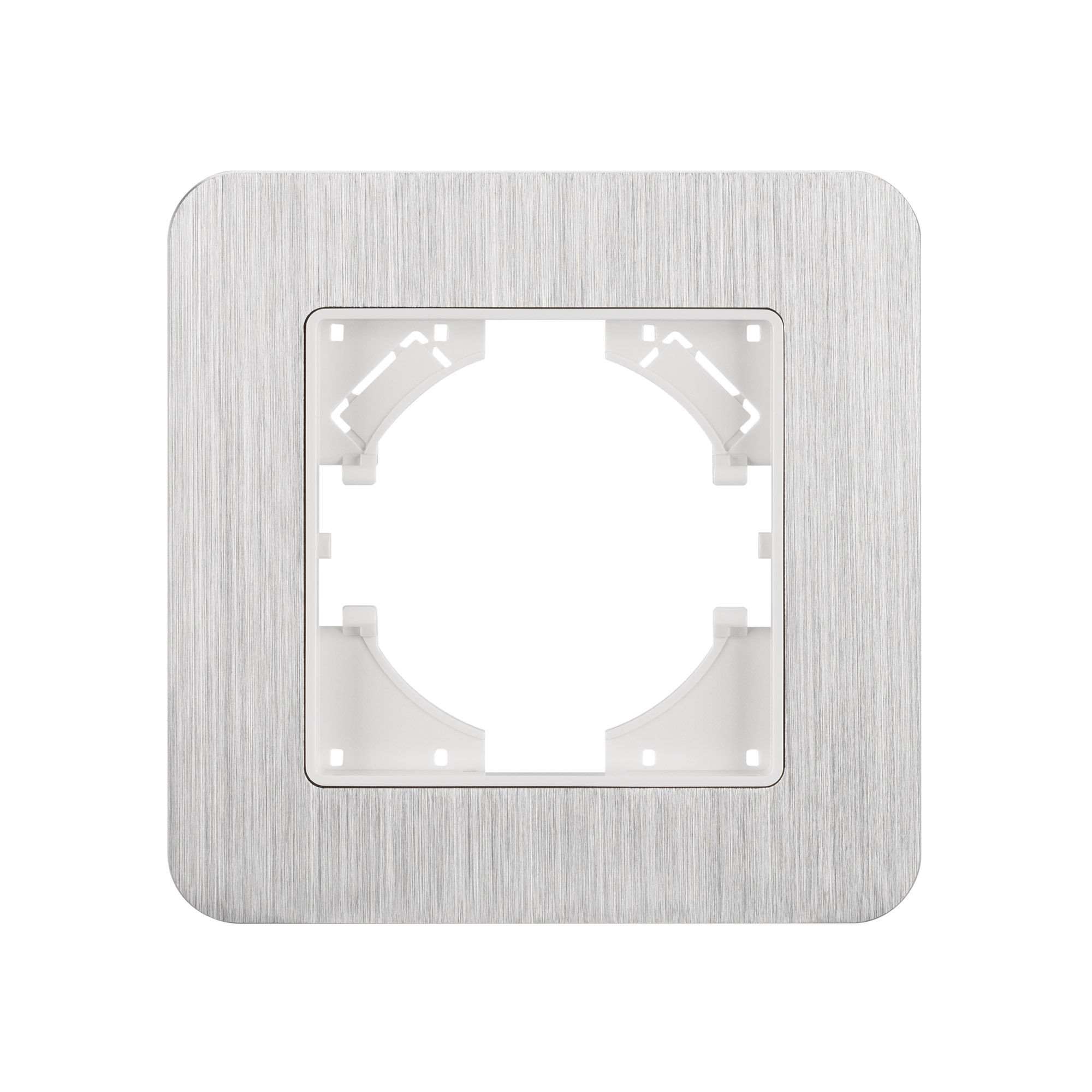 Рамка из серии AKIRY представляет собой комбинацию в виде основы из тугоплавкого пластика и 3-х миллиметровой накладки из алюминиевого сплава. Корпус выполнен в серебристом цвете и сатинированной поверхностью с высотой 7мм, что позволяет гармонично встроить в интерьер любого современного дизайн-проекта. Невидимая часть из тугоплавкого пластика, для надежной фиксации механизма. Грани алюминиевой накладки аккуратно обработаны и отшлифованы, чтобы обезопасить пользователя при установке и демонтаже.