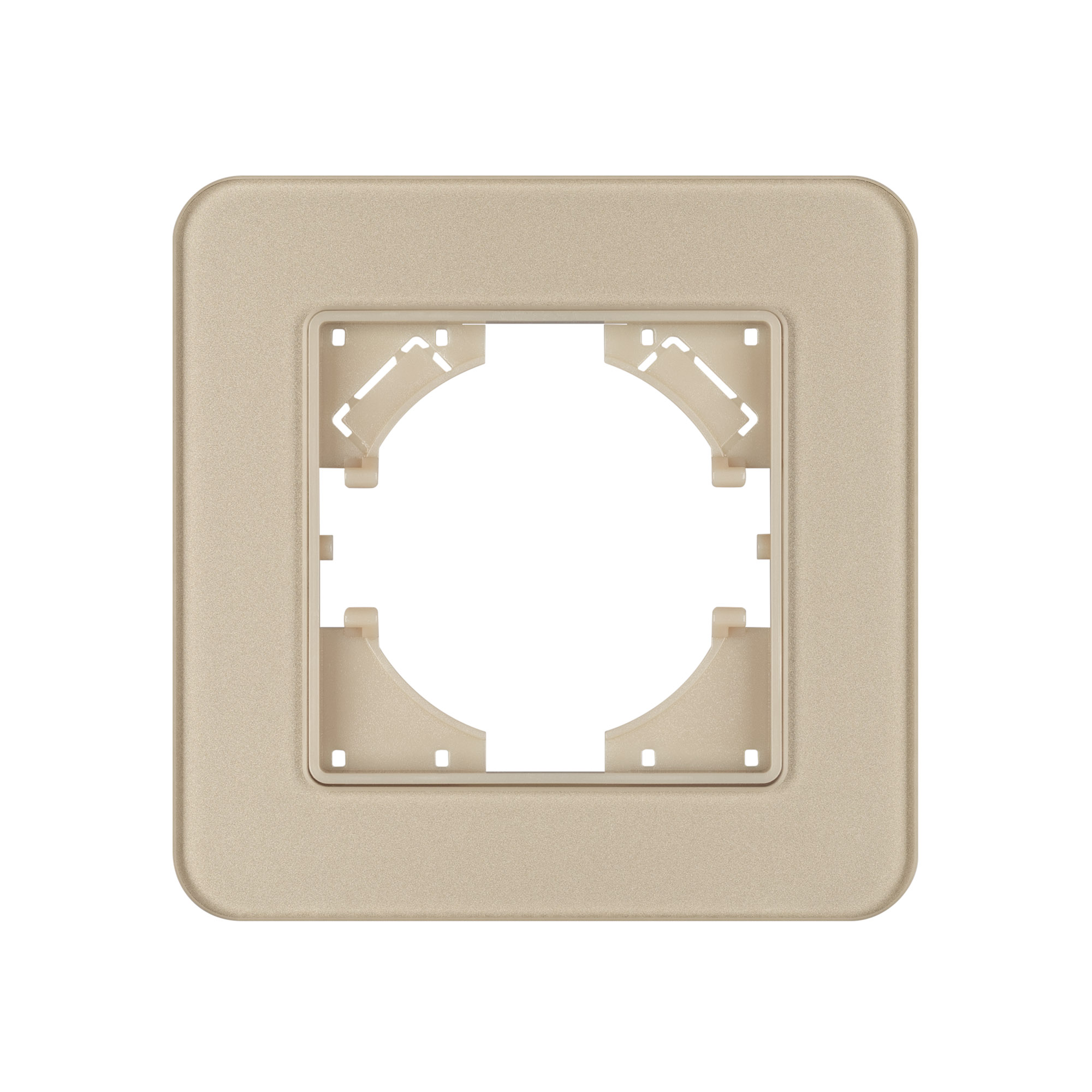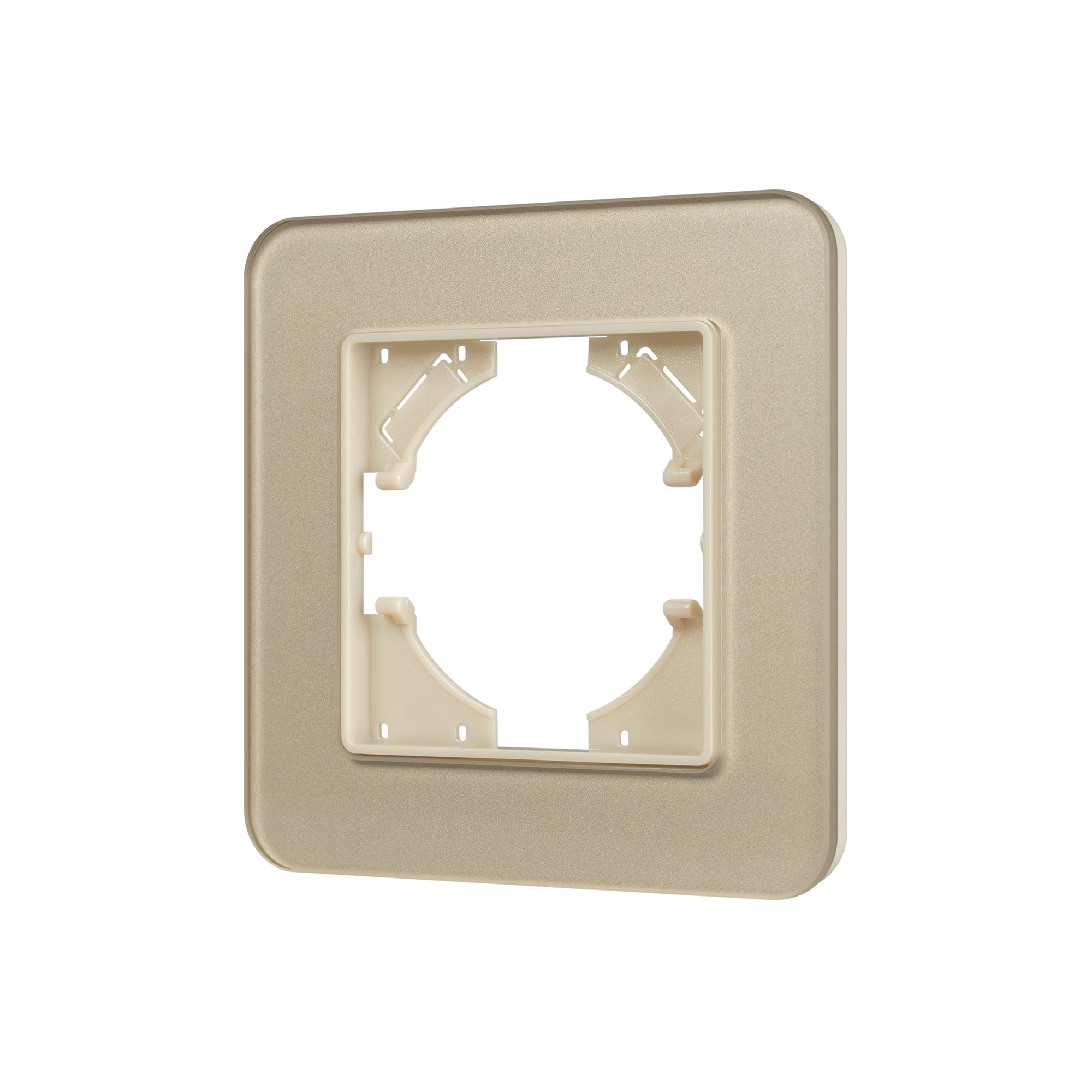 Рамка стеклянная на 1 пост, под встраиваемый механизм. Цвет - золотой. Среднего уровня герметичности IP20. Ориентация монтажа - горизонтальная (основным ориентиром служат посадочные выступы для накладки механизма).
