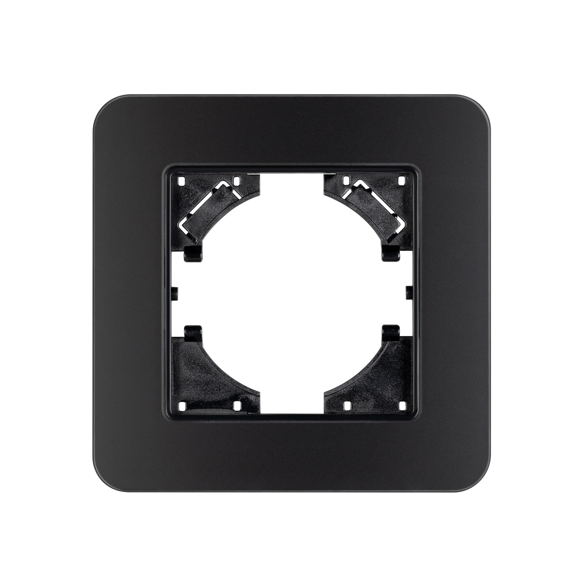 Рамка стеклянная на 1 пост, под встраиваемый механизм. Цвет - черный с Soft-Touch покрытием. Среднего уровня герметичности IP20. Ориентация монтажа - горизонтальная (основным ориентиром служат посадочные выступы для накладки механизма).