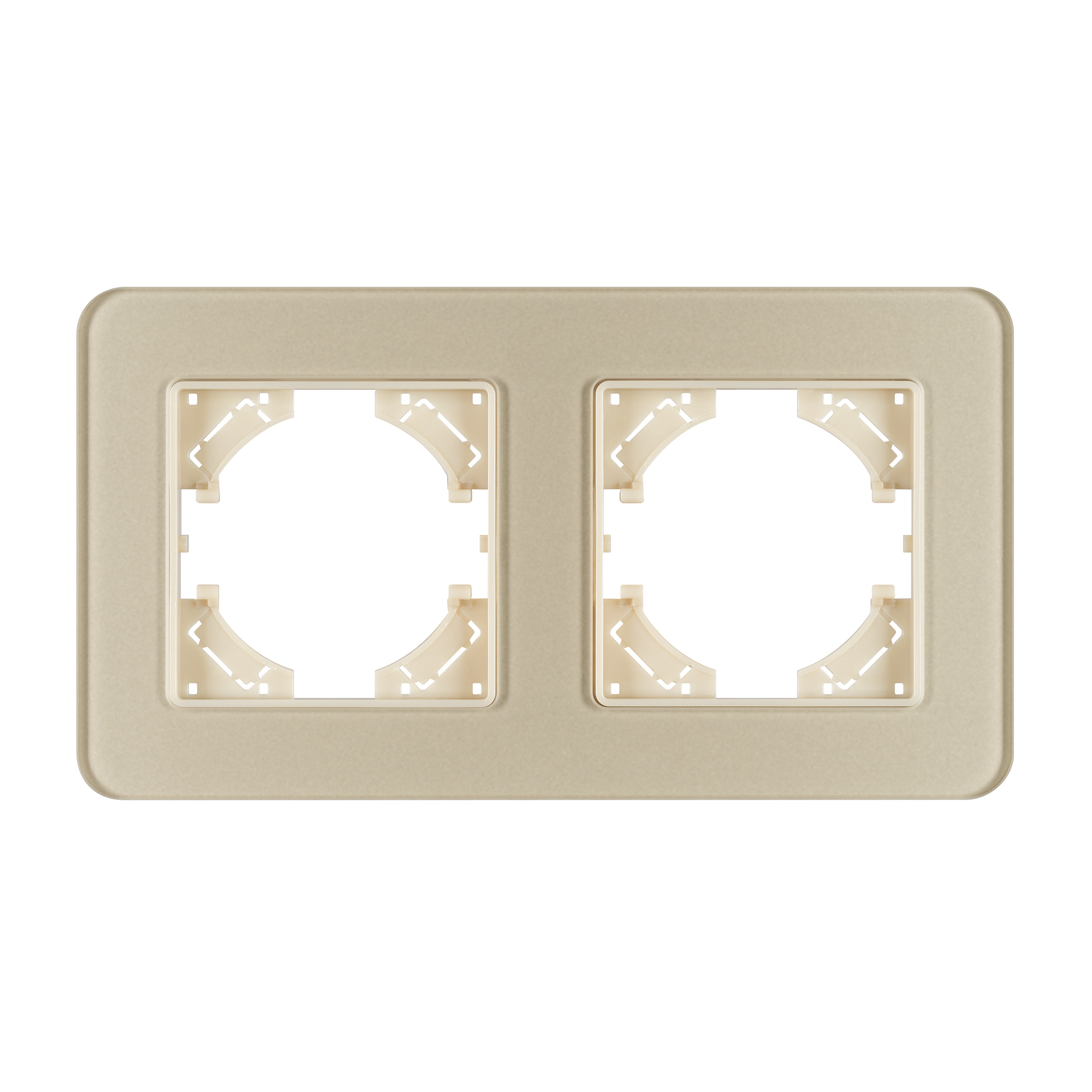 Рамка стеклянная на 2 поста, под встраиваемый механизм. Цвет - золотой с Soft-Touch покрытием. Среднего уровня герметичности IP20. Ориентация монтажа - горизонтальная (основным ориентиром служат посадочные выступы для накладки механизма).
