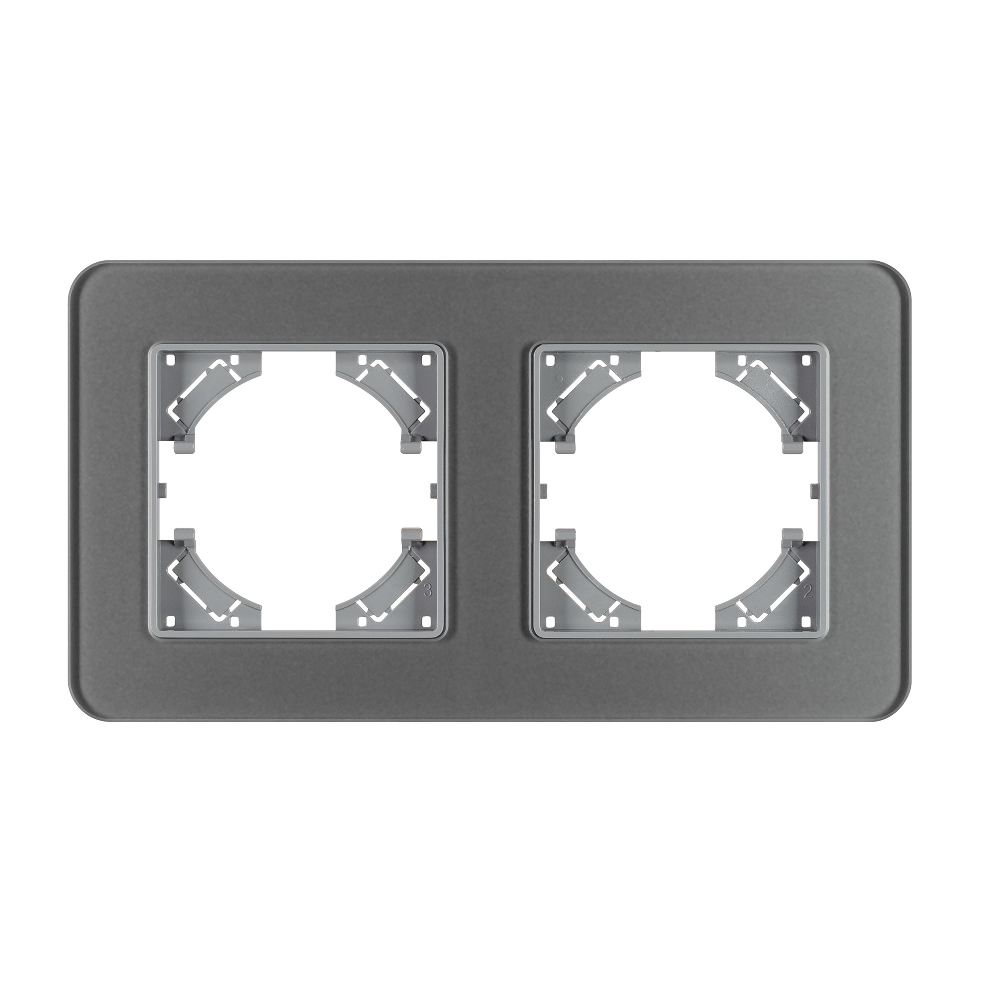 Рамка стеклянная на 2 поста, под встраиваемый механизм. Цвет - серый с Soft-Touch покрытием. Среднего уровня герметичности IP20. Ориентация монтажа - горизонтальная (основным ориентиром служат посадочные выступы для накладки механизма).