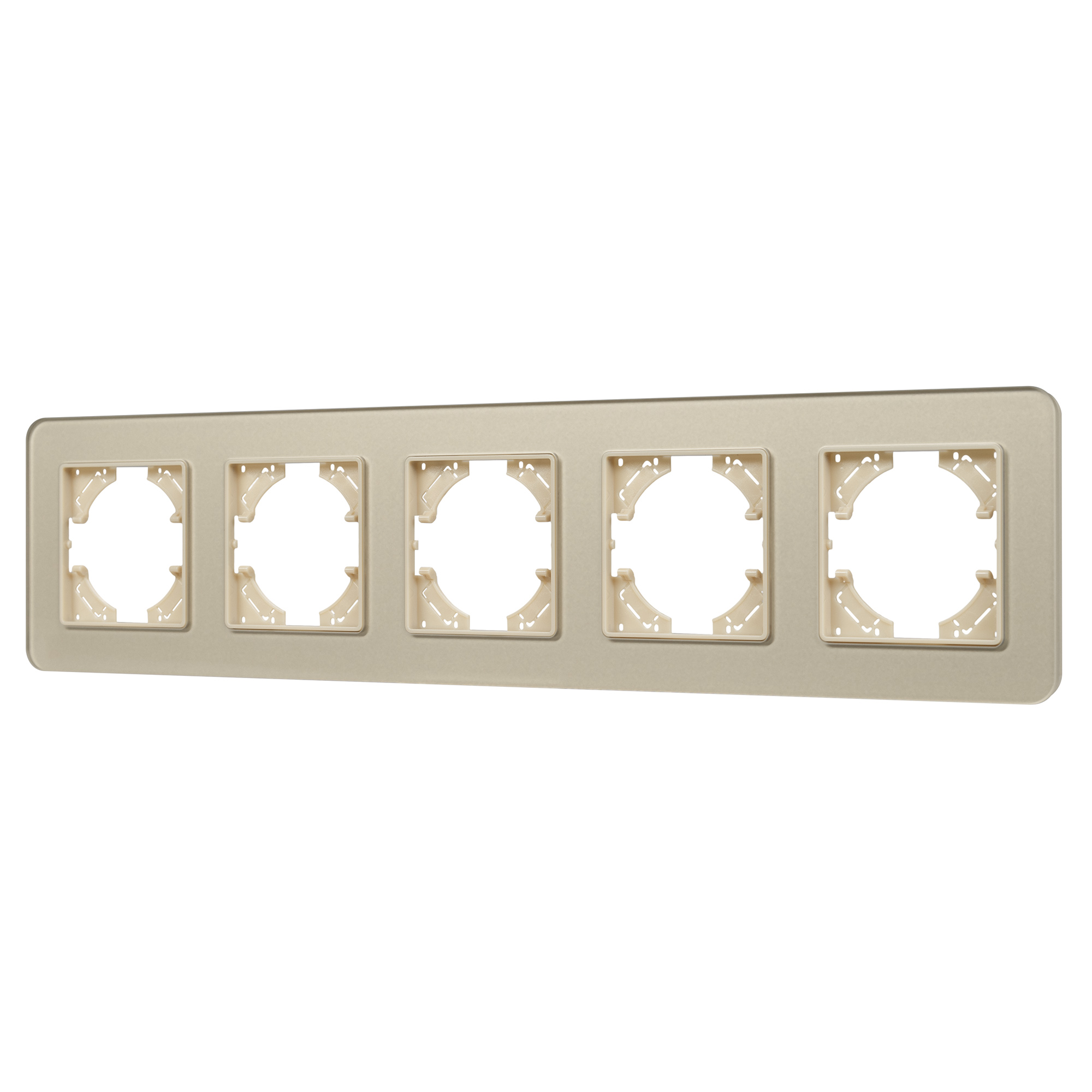 Рамка стеклянная на 5 постов, под встраиваемый механизм. Цвет - золотой с Soft-Touch покрытием. Среднего уровня герметичности IP20. Ориентация монтажа - горизонтальная (основным ориентиром служат посадочные выступы для накладки механизма).