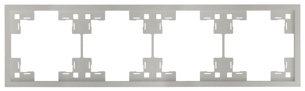 Четырехместная рамка цвета платина коллекции Standart. Подходит для горизонтальной и вертикальной установки. Размер 83,5х296,5х9,6 мм.