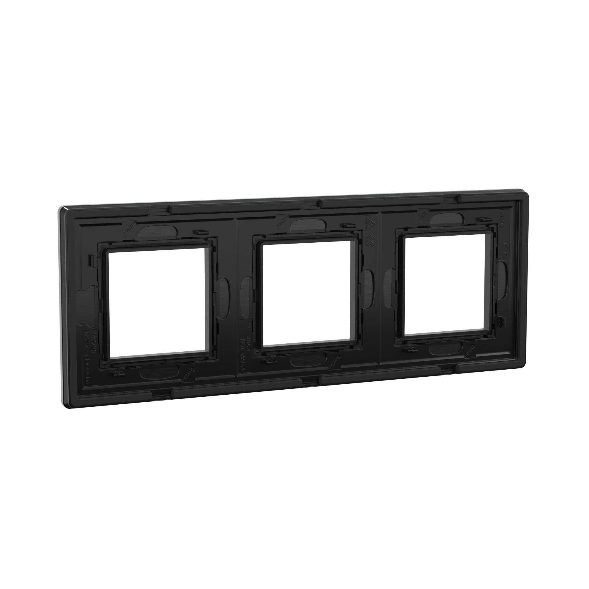 Черная рамка из алюминия для настенного монтажа. Назначение: декоративное оформление серии "Avanti"; монтаж в стену на каркас ЭУИ Avanti (код 4400802). Дизайн разработан B. Dall’Ecco. Материал – алюминий. Фактура – браш. Кол-во модулей: 6