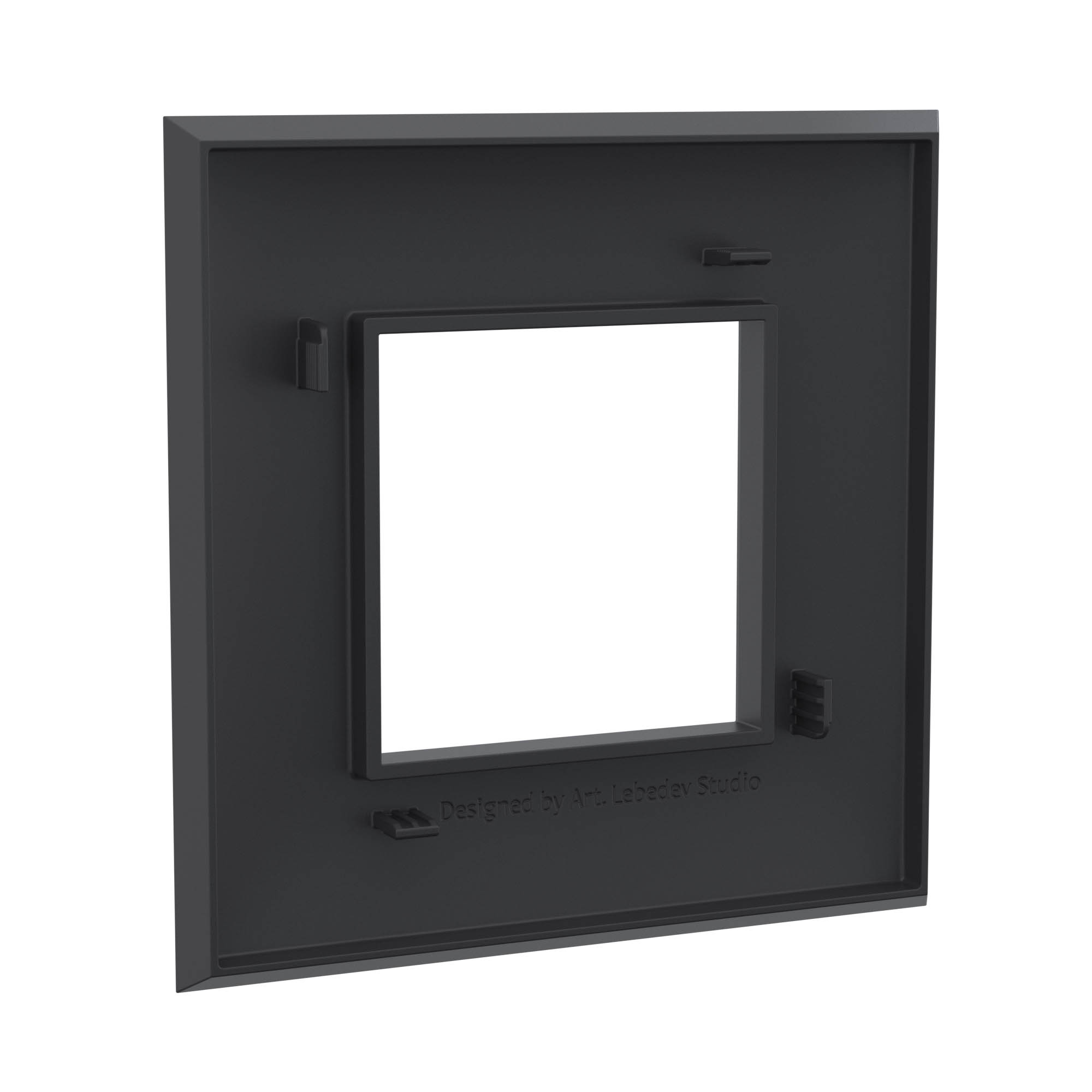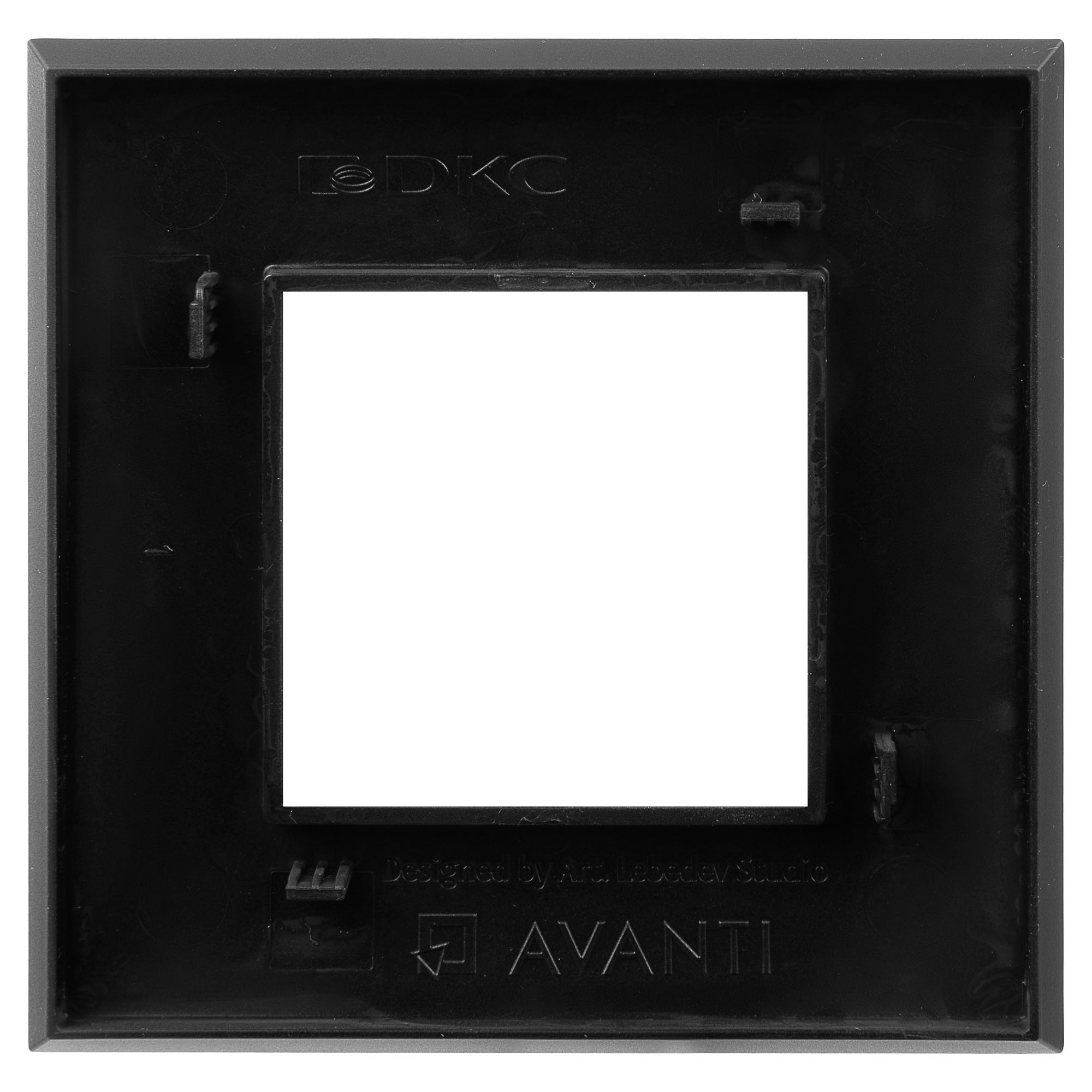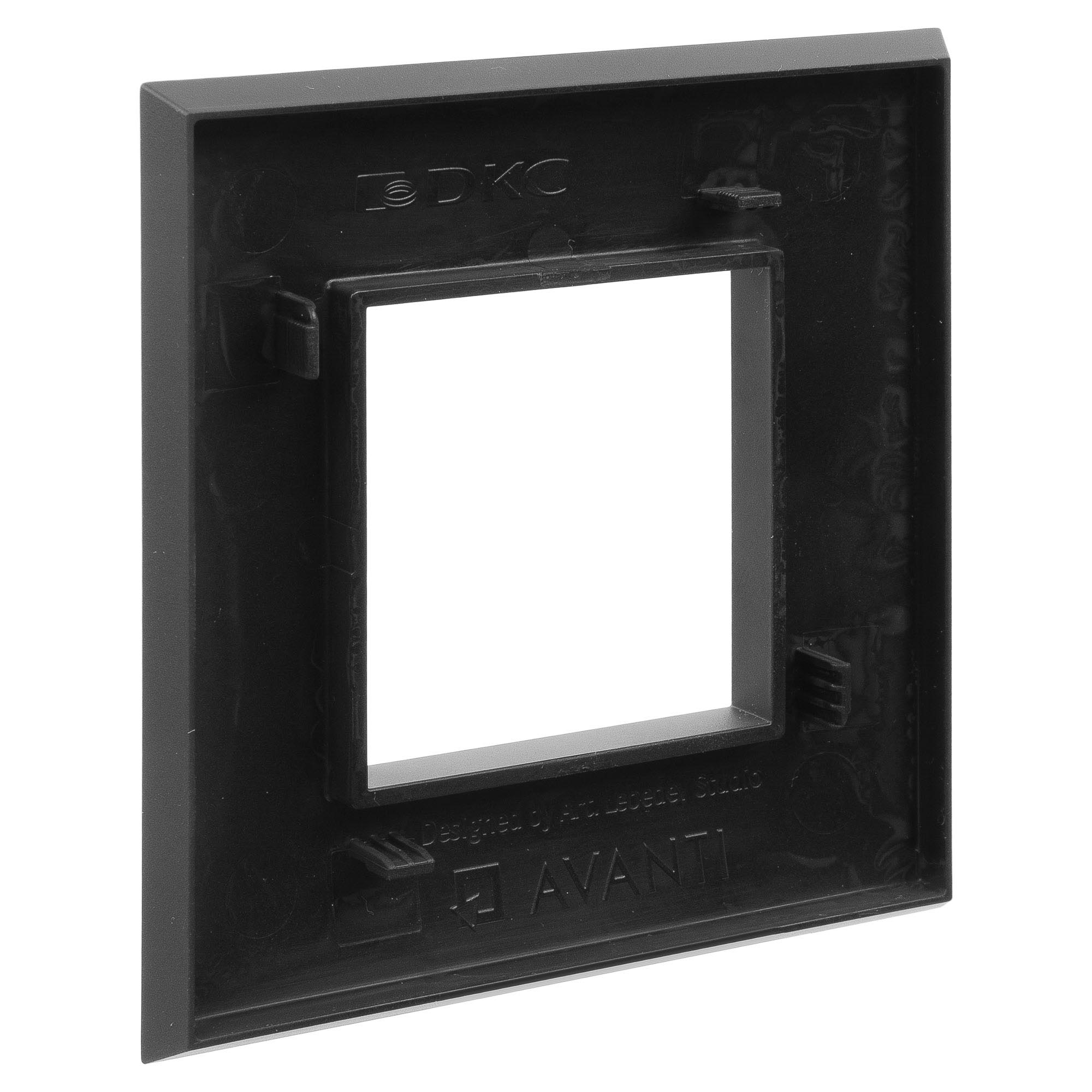 Рамки ДКС, разработанные студией Артемия Лебедева, предназначены для декоративного оформления электроустановочных изделий. Цвет рамки: "Черный матовый" - темный, манящий, приглушающий свет акцент. Отсутствие следов от прикосновений на поверхности изделий дает ощущение премиального вида в интерьере. Линейка сочетается с текстурными сдержанными покрытиями, интерьерами в различных стилях от минимализма и контемпорари до арт-деко и гранж, на стенах из необработанного кирпича в помещениях лофт. В рамке предусмотрен 1 пост под ЭУИ (2 модуля). Габаритные размеры: 90х90 мм. Материал – термопласт.