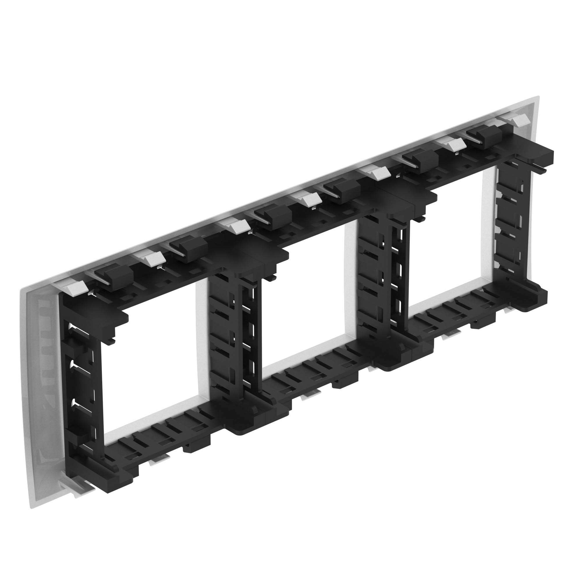 ЭУИ "Avanti" – это образец сочетания передового дизайна и высокой надежности. Их можно применять как на промышленных объектах, так и в жилых помещениях с дизайнерским ремонтом. Эта серия была вдохновлена традициями русского авангарда начала XX века. В состав системы входят: каркасы, механизмы и рамки. Механизмы устанавливаются в кабель-каналы, лючки или башенки с помощью каркасов и рамок. Особая конструкция аксессуров позволяет повысить степень пыле- и влагозащиты до IP 55, что дает возможно размещать электроустановочные изделия даже в помещениях с повышенным уровнем влажности и загрязненности, не опасаясь попадания влаги или мусора во внутреннюю часть механизма. При монтаже механизм устанавливается в рамку, а та, в свою очередь, фиксируется на каркасе и устанавливается в нужном месте - на стене, в лючке, башенке или кабель-канале. Рамка изготовлена из АБС-пластика и имеет цвет "Черный квадрат". Предназначена для установки шести модулей ЭУИ.