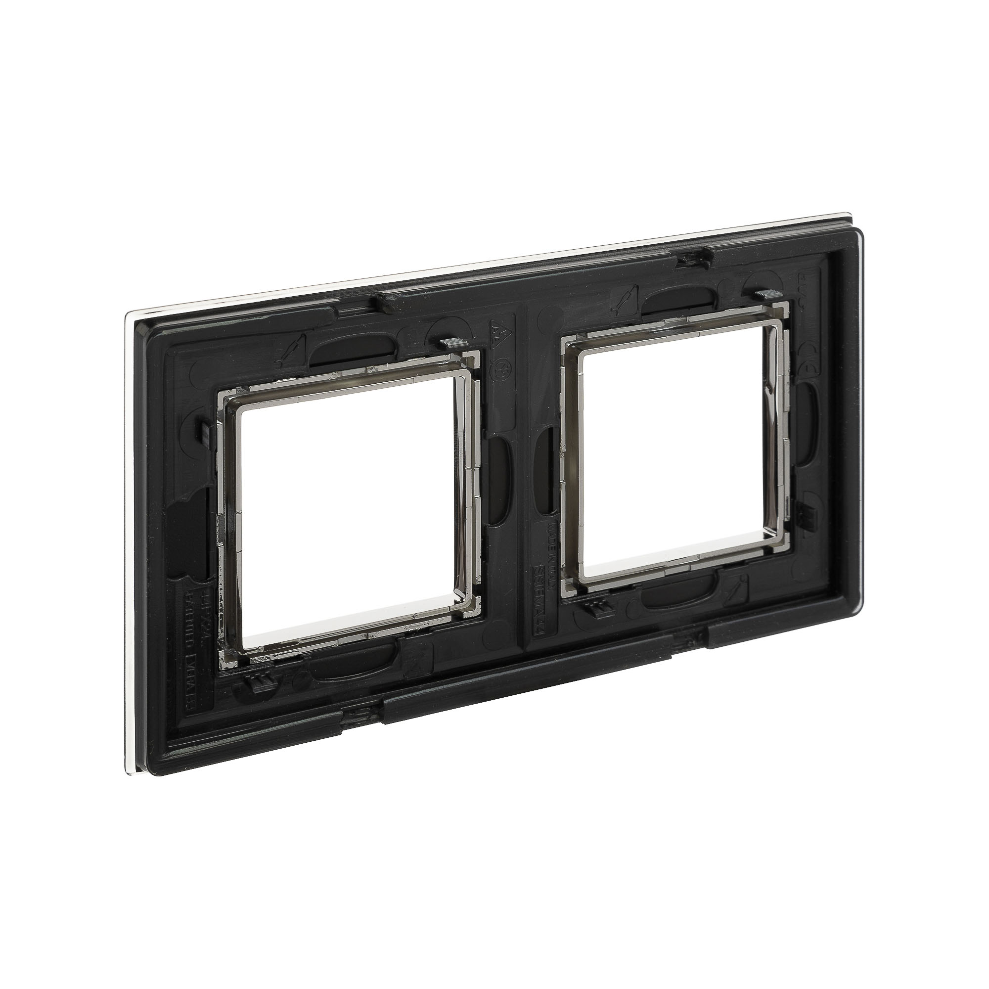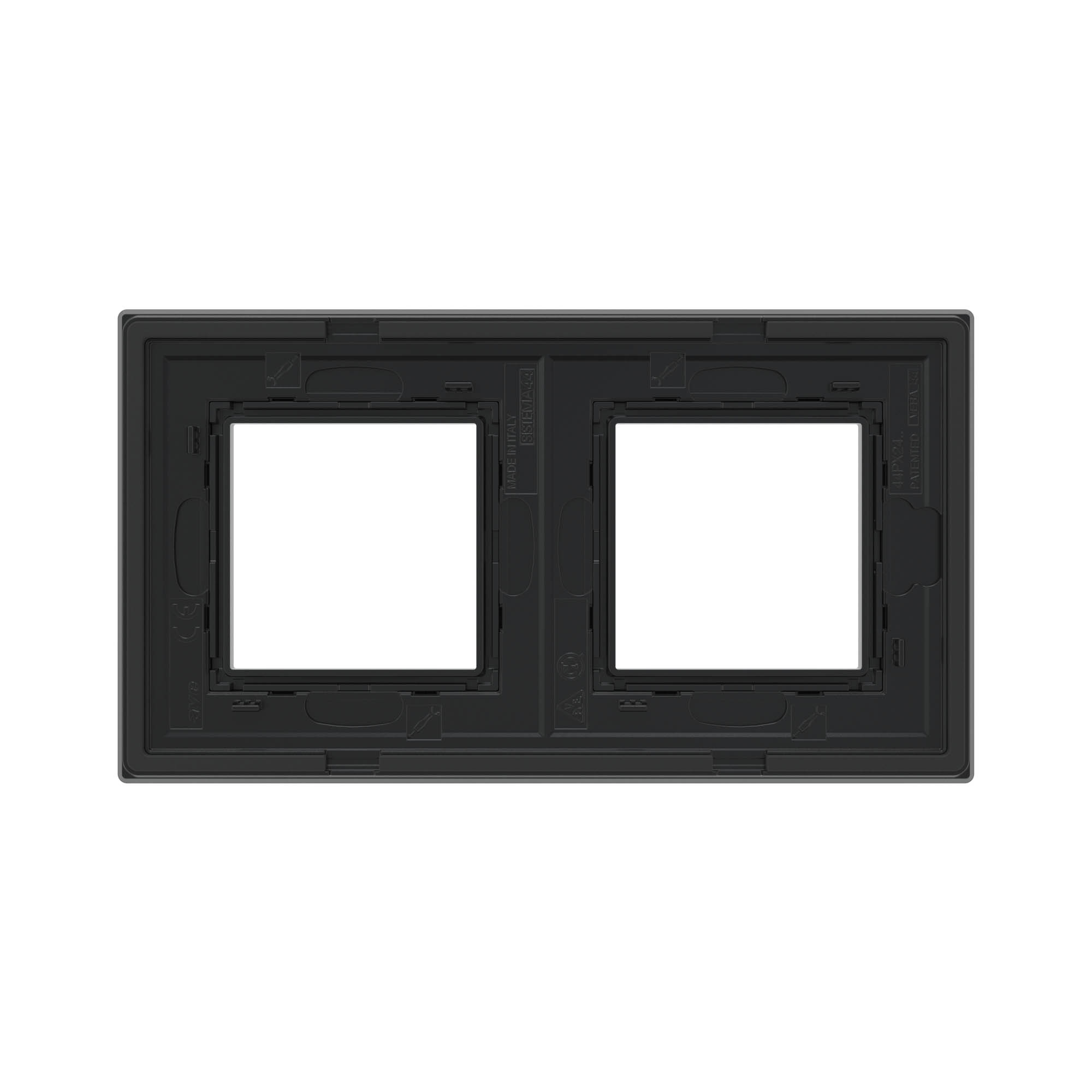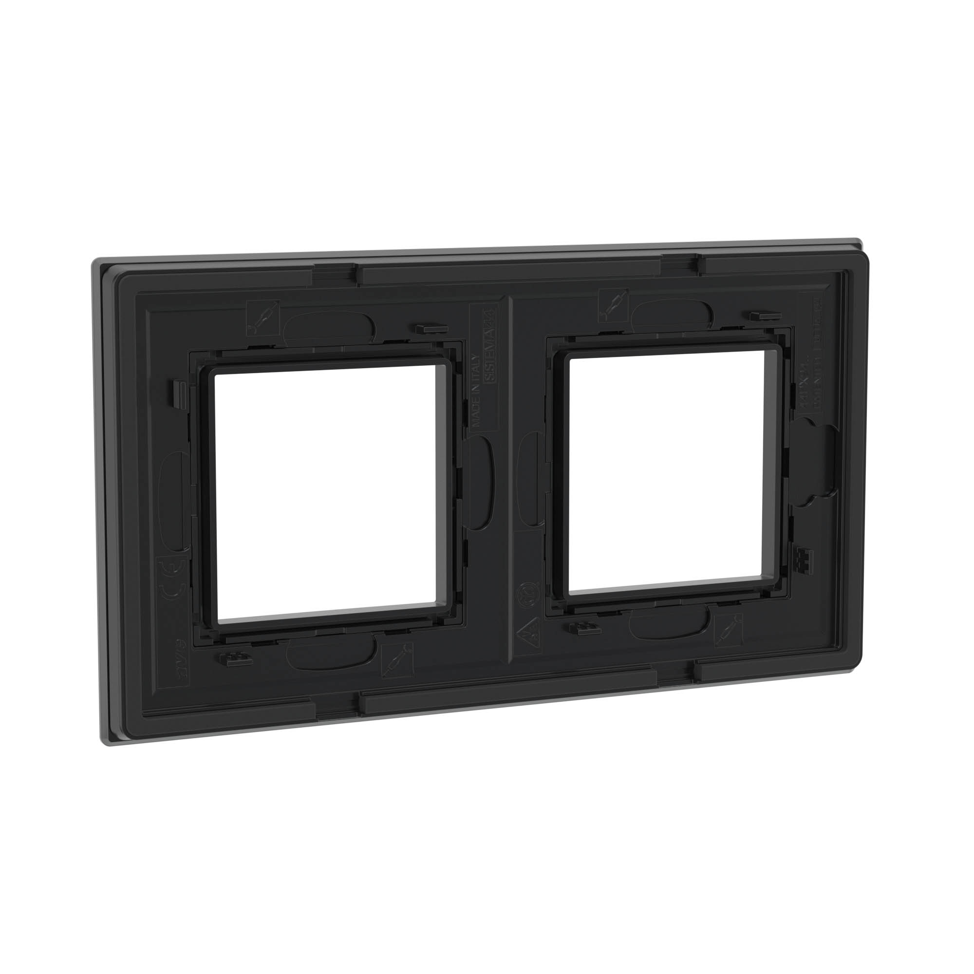 Черная рамка из натурального стекла для настенного монтажа. Назначение: декоративное оформление серии "Avanti"; монтаж в стену на каркас ЭУИ "Avanti" (код 4400802). Дизайн разработан B. Dall’Ecco. Материал – стекло. Фактура – глянец. Кол-во модулей: 4