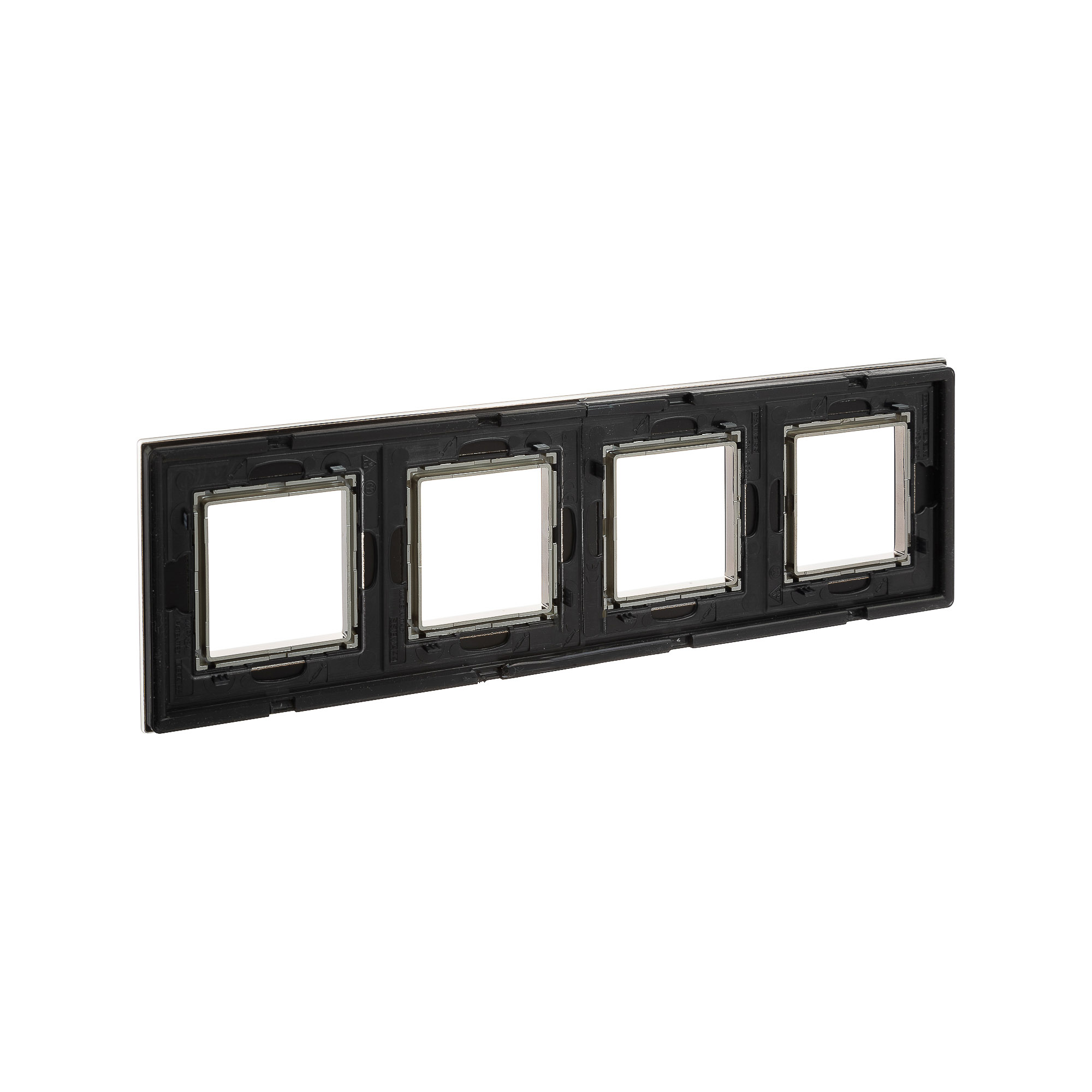 Черная рамка из натурального стекла для настенного монтажа. Назначение: декоративное оформление серии "Avanti"; монтаж в стену на каркас ЭУИ "Avanti" (код 4400802). Дизайн разработан B. Dall’Ecco. Материал – стекло. Фактура – глянец. Кол-во модулей: 8