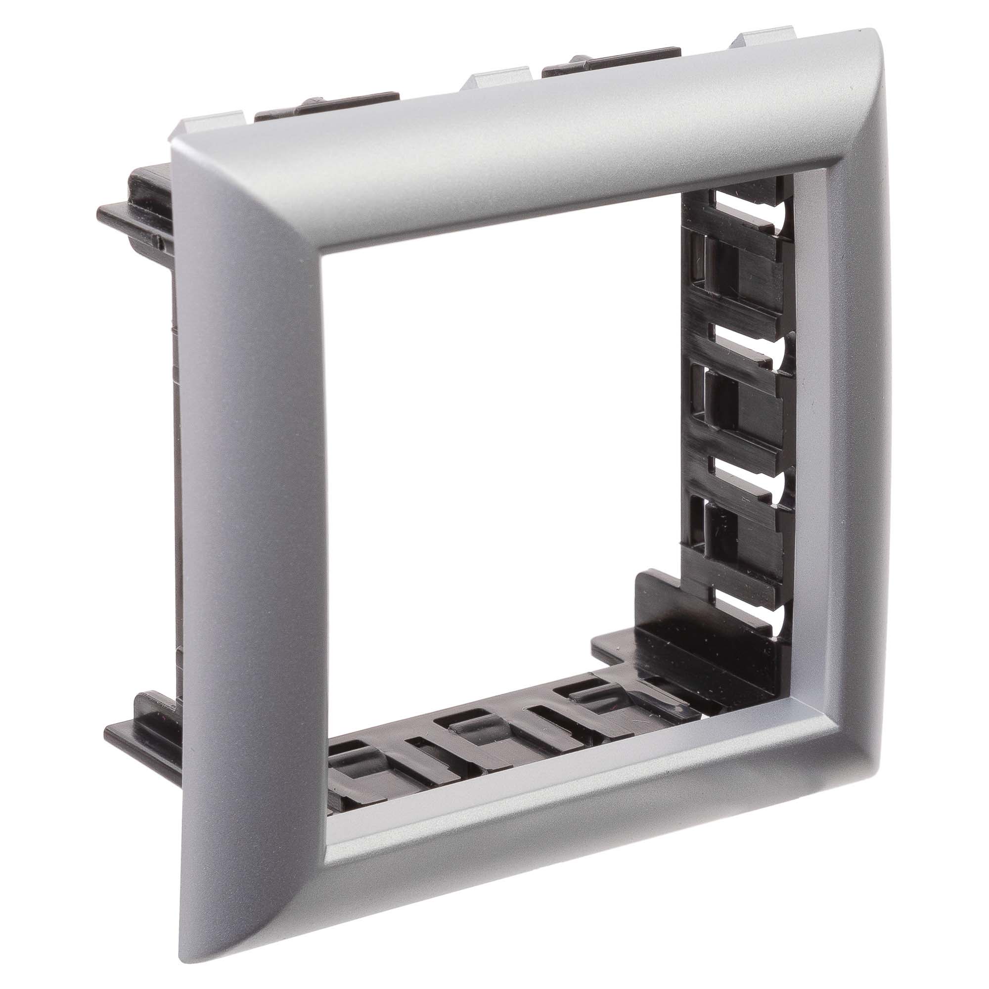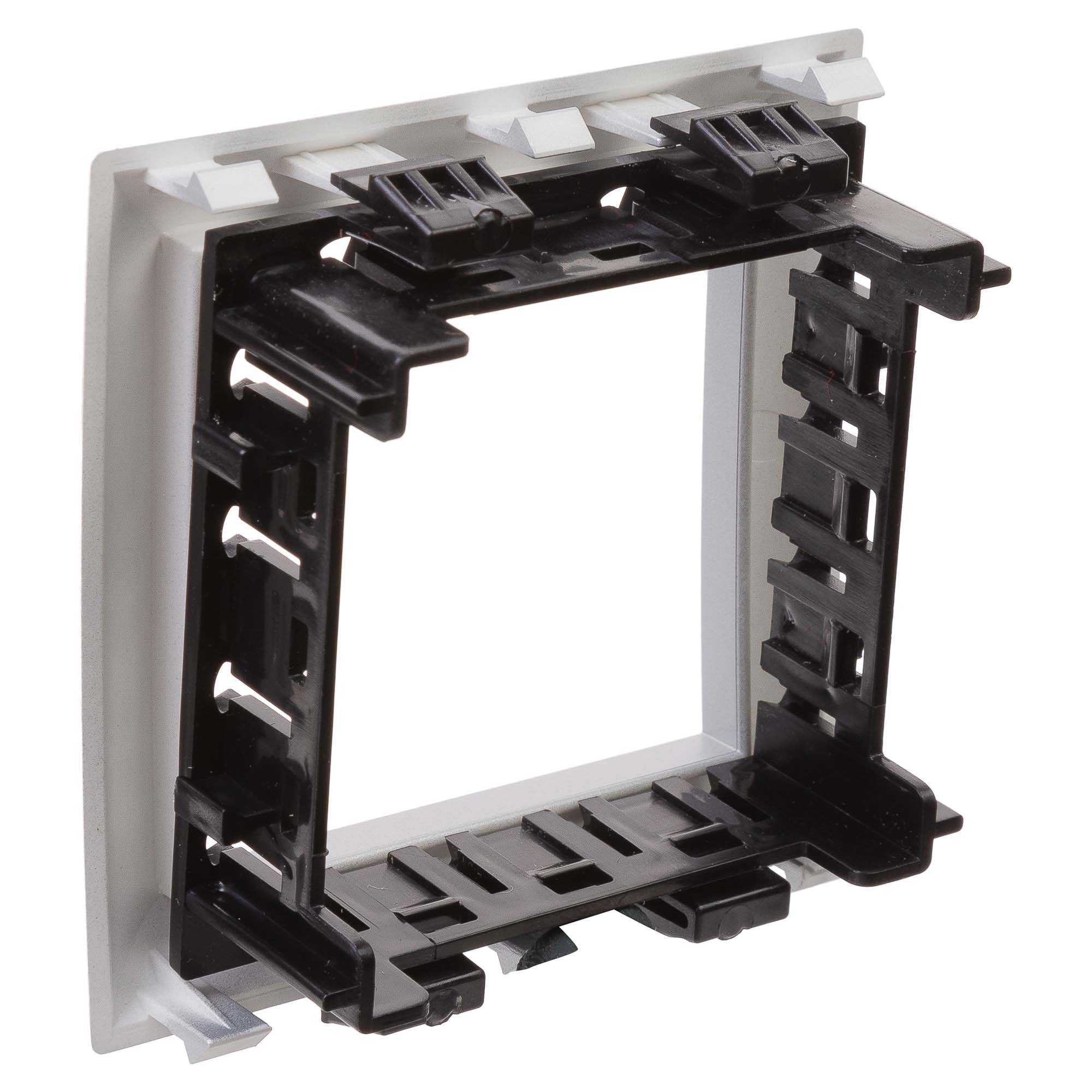 ЭУИ "Avanti" – это образец сочетания передового дизайна и высокой надежности. Их можно применять как на промышленных объектах, так и в жилых помещениях с дизайнерским ремонтом. Эта серия была вдохновлена традициями русского авангарда начала XX века. В состав системы входят: каркасы, механизмы и рамки. Механизмы устанавливаются в кабель-каналы, лючки или башенки с помощью каркасов и рамок. Особая конструкция аксессуров позволяет повысить степень пыле- и влагозащиты до IP 55, что дает возможно размещать электроустановочные изделия даже в помещениях с повышенным уровнем влажности и загрязненности, не опасаясь попадания влаги или мусора во внутреннюю часть механизма. При монтаже механизм устанавливается в рамку, а та, в свою очередь, фиксируется на каркасе и устанавливается в нужном месте - на стене, в лючке, башенке или кабель-канале. Рамка изготовлена из АБС-пластика и имеет цвет "Серебристый металлик". Предназначена для установки двух модулей ЭУИ.