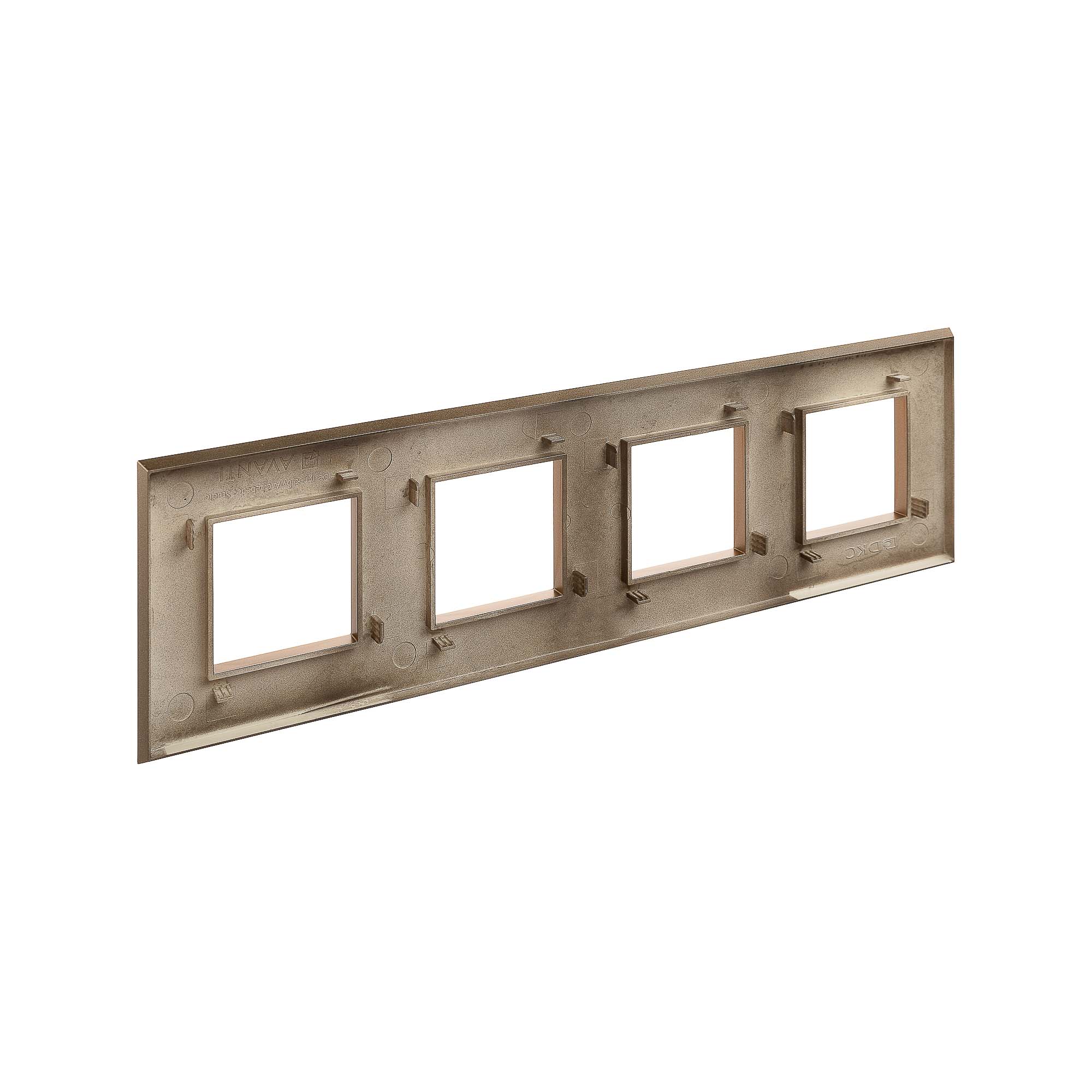Рамки ДКС, разработанные студией Артемия Лебедева, предназначены для декоративного оформления электроустановочных изделий. Цвет рамки: "Золотистый жемчуг" - нежный теплый оттенок, переливающийся жемчужным отблеском. Его мягкость, совершенство и сдержанная красота притягивают внимание и свидетельствует о тонком вкусе владельца. В рамке предусмотрено 4 поста под ЭУИ (8 модулей). Рамка может быть размещена как горизонтально, так и вертикально. Габаритные размеры: 300х90 мм. Материал – термопласт.