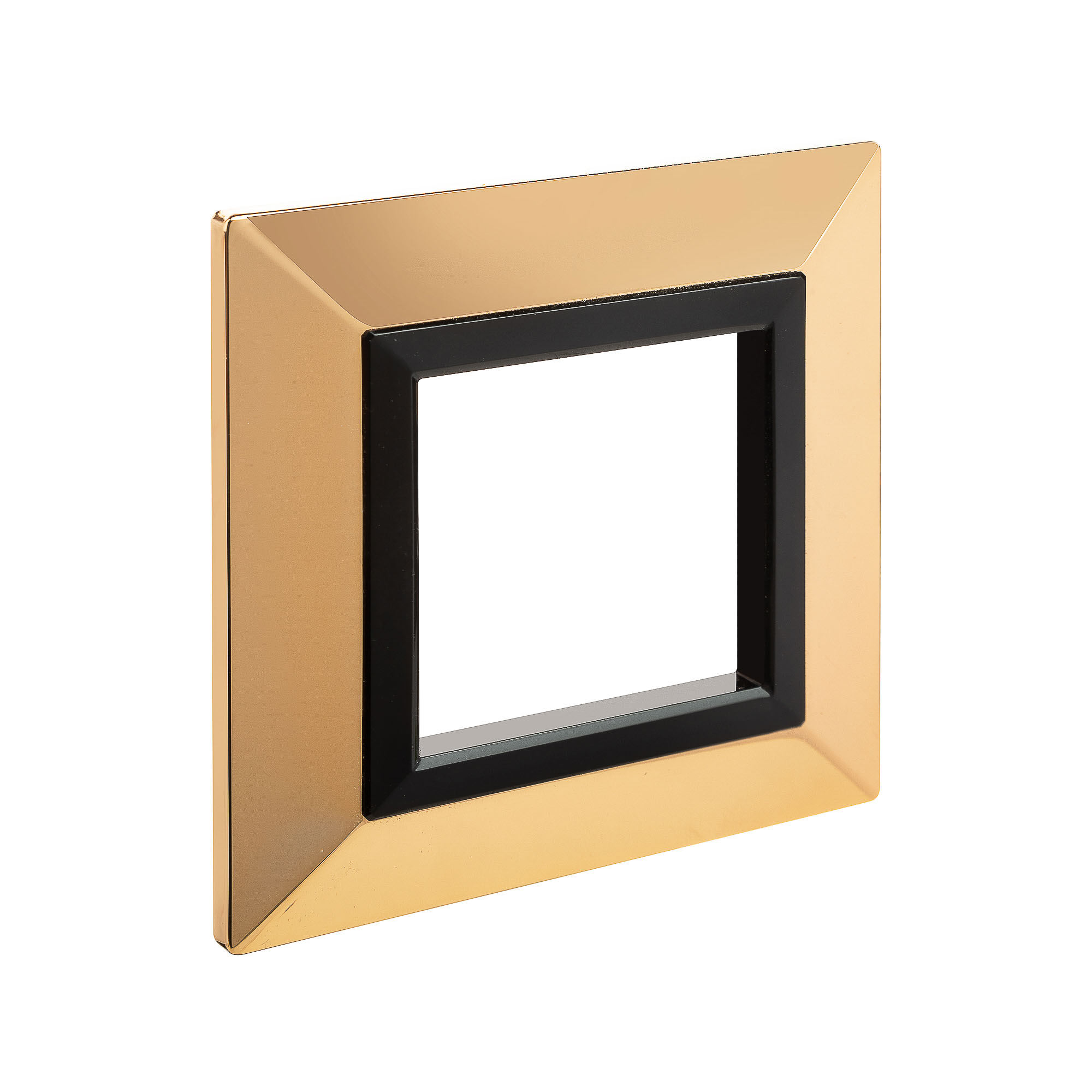 Золотистая рамка из металла для настенного монтажа. Назначение: декоративное оформление серии "Avanti"; монтаж в стену на каркас ЭУИ "Avanti" (код 4400802). Дизайн разработан Luca Mertelli. Материал – металл. Покрытие – порошковая краска. Кол-во модулей: 2