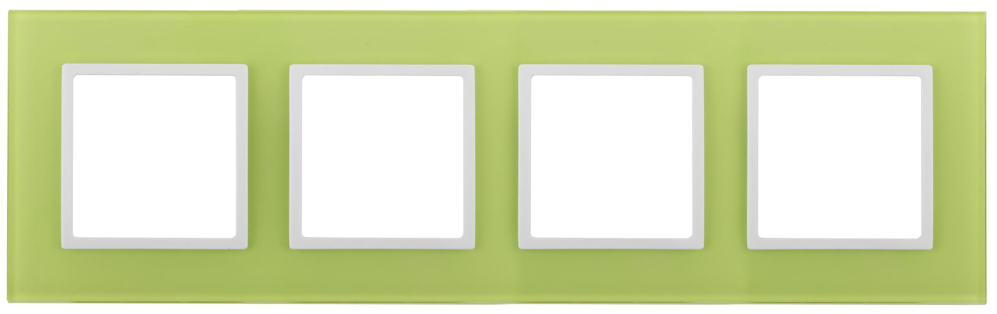Рамка для выключателей и розеток 4-постовая серии Эра Elegance цвет лайм 14-5104-26. Сделана из стекла. Используется только с механизмами серии Эра Elegance.