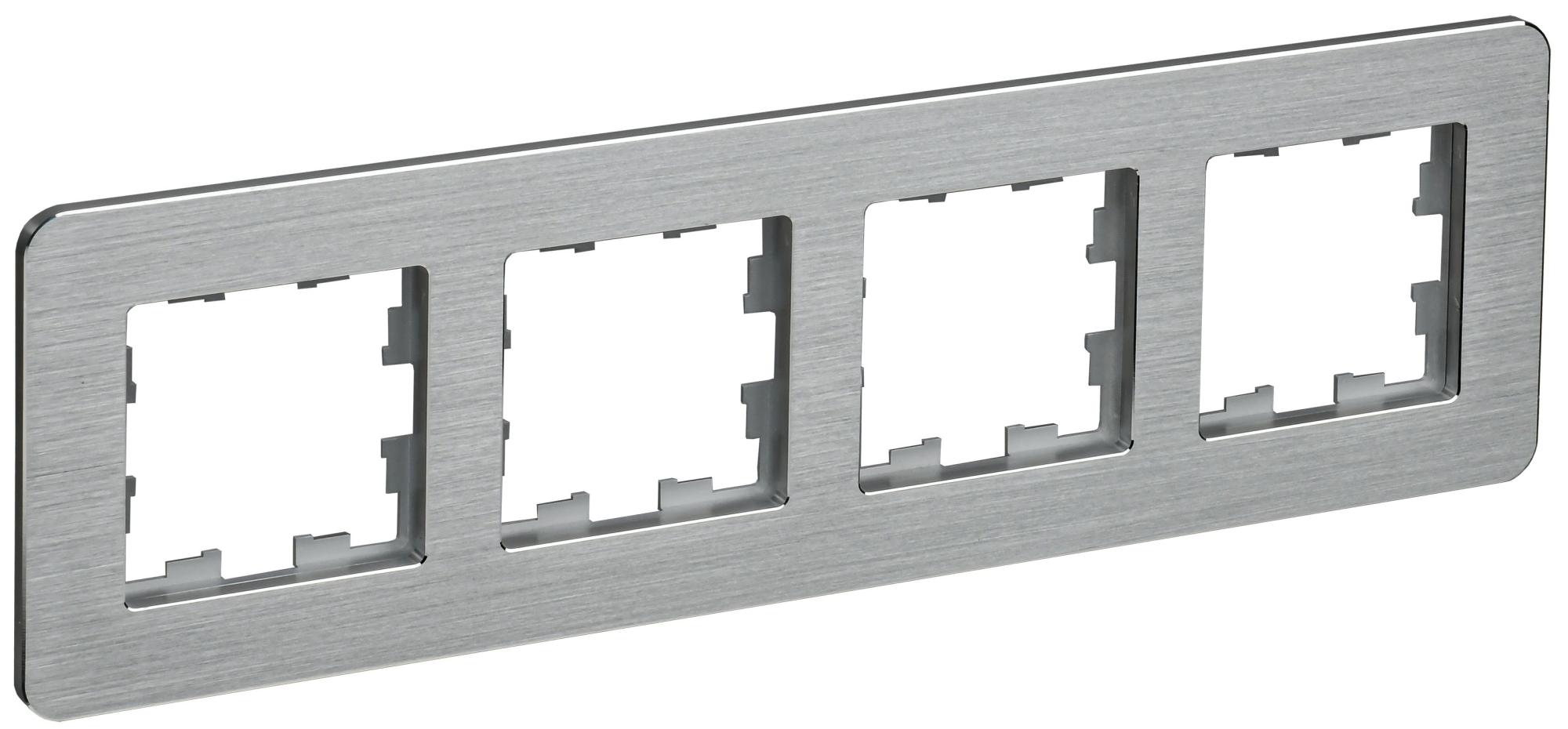 —IEK BRITE DECOR /алюм метал. скругл.угол Рамка 4-м РУ-4-1-Бр RE AL, арт BR-M42-M-21-K47