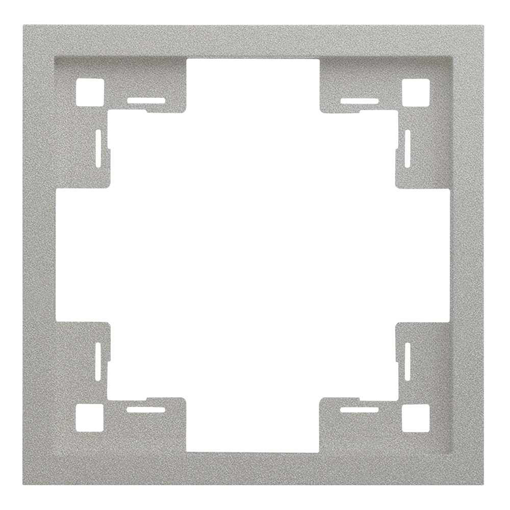 Одноместная рамка цвета платина коллекции Standart. Размер 83,5х83,5х9,6 мм.