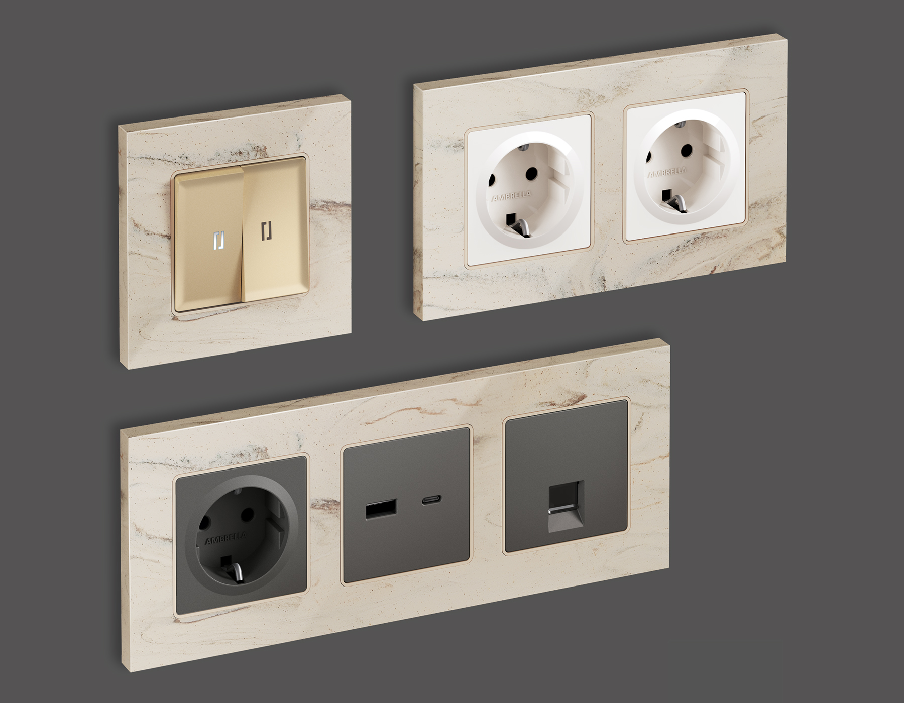 Рамка ALFA Grand (Серо-бежевый мрамор) 3-ая AF930603. Многогранный ассортимент Ambrella Volt включает в себя механизмы, лицевые панели и рамки, а также комплекты, доступные в различных цветовых решениях. Продукция представлена в модульном исполнении, что позволяет гибко настраивать внешнийвид и функциональность. Вам будет легко заменить лицевую панель, рамку или механизм, найдя идеальное сочетание цветов.