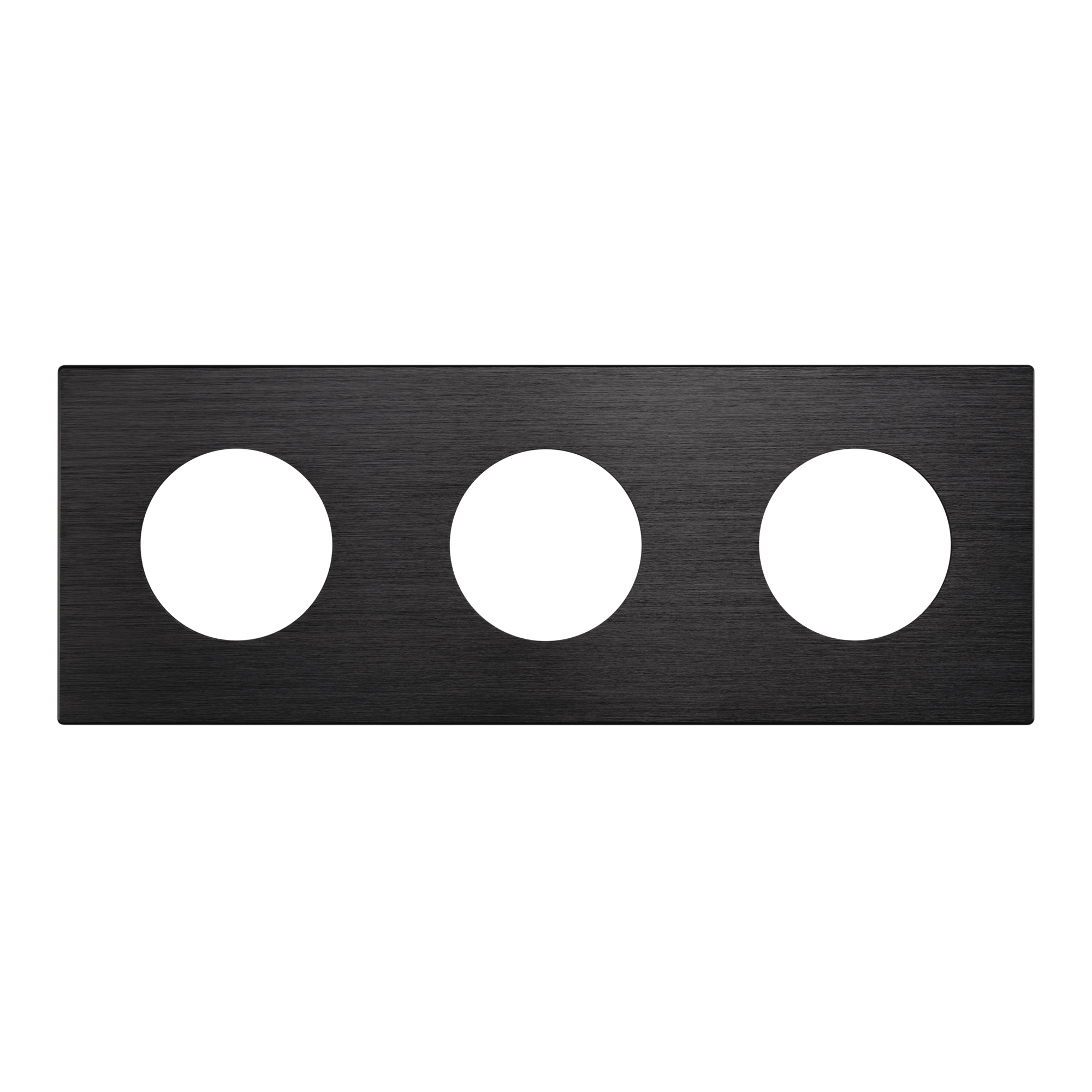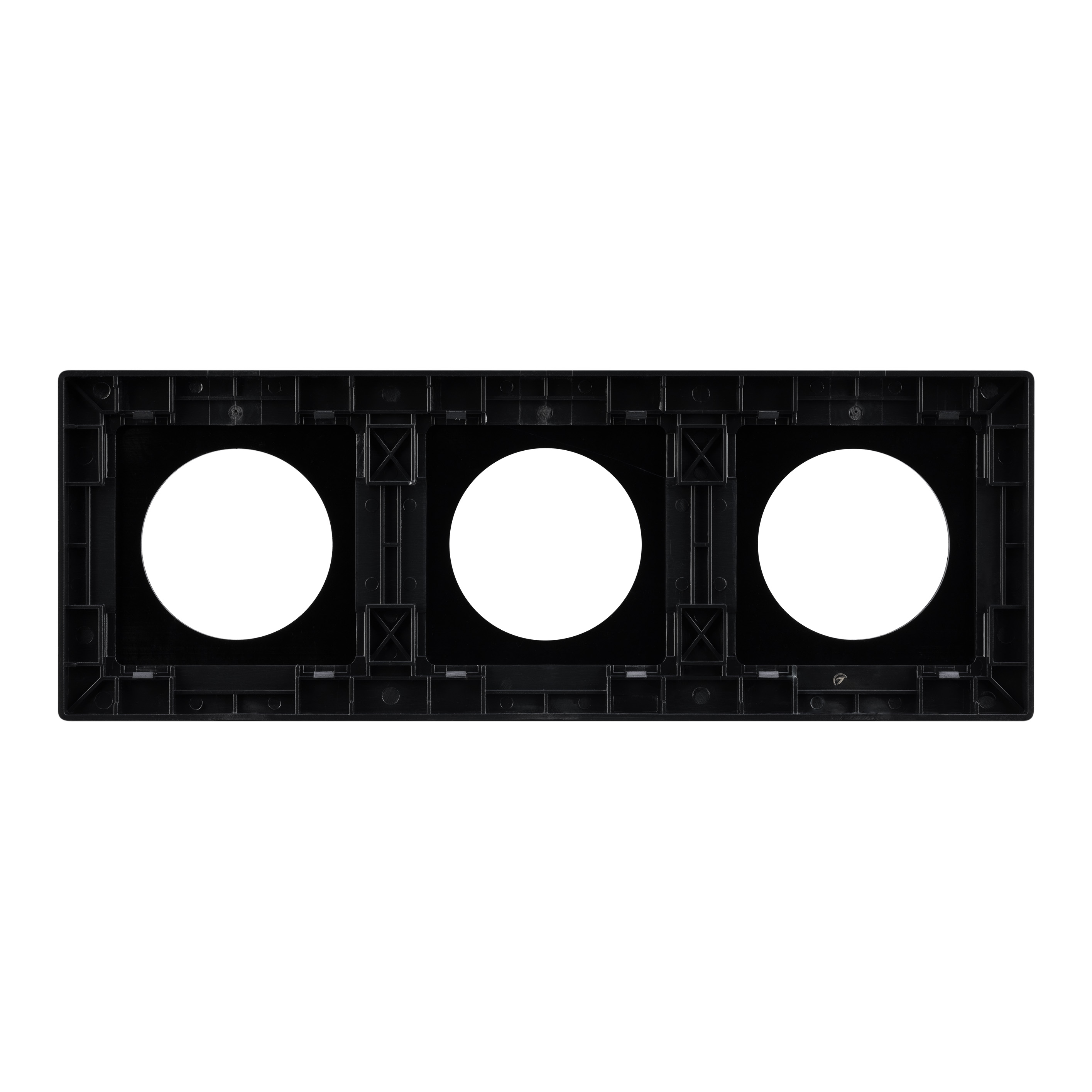Рамка алюминиевая на 3 поста, под встраиваемый механизм. Вырез под функциональную часть - круг. Цвет - черный. Ориентации монтажа - горизонтальная и вертикальная.