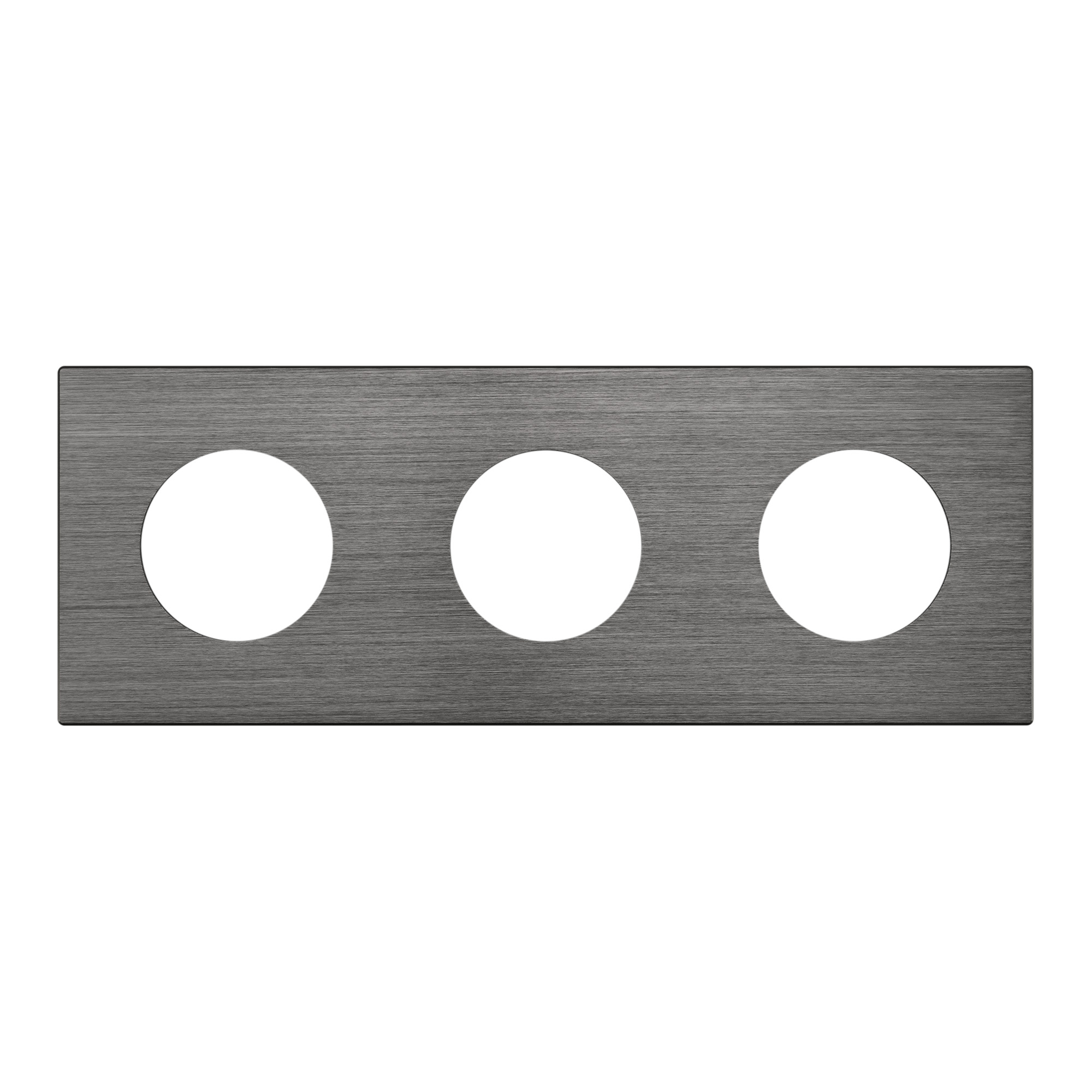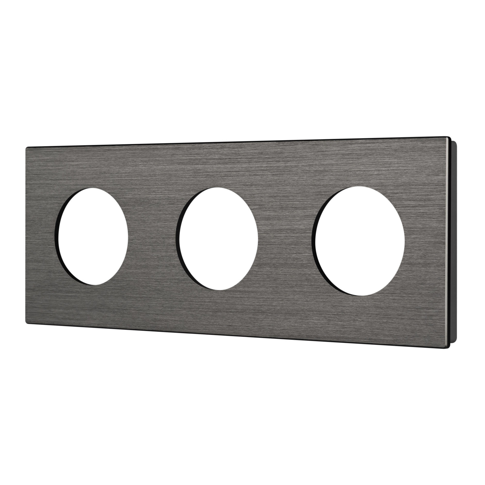 Рамка алюминиевая на 3 поста, под встраиваемый механизм. Вырез под функциональную часть - круг. Цвет - серый. Ориентации монтажа - горизонтальная и вертикальная.