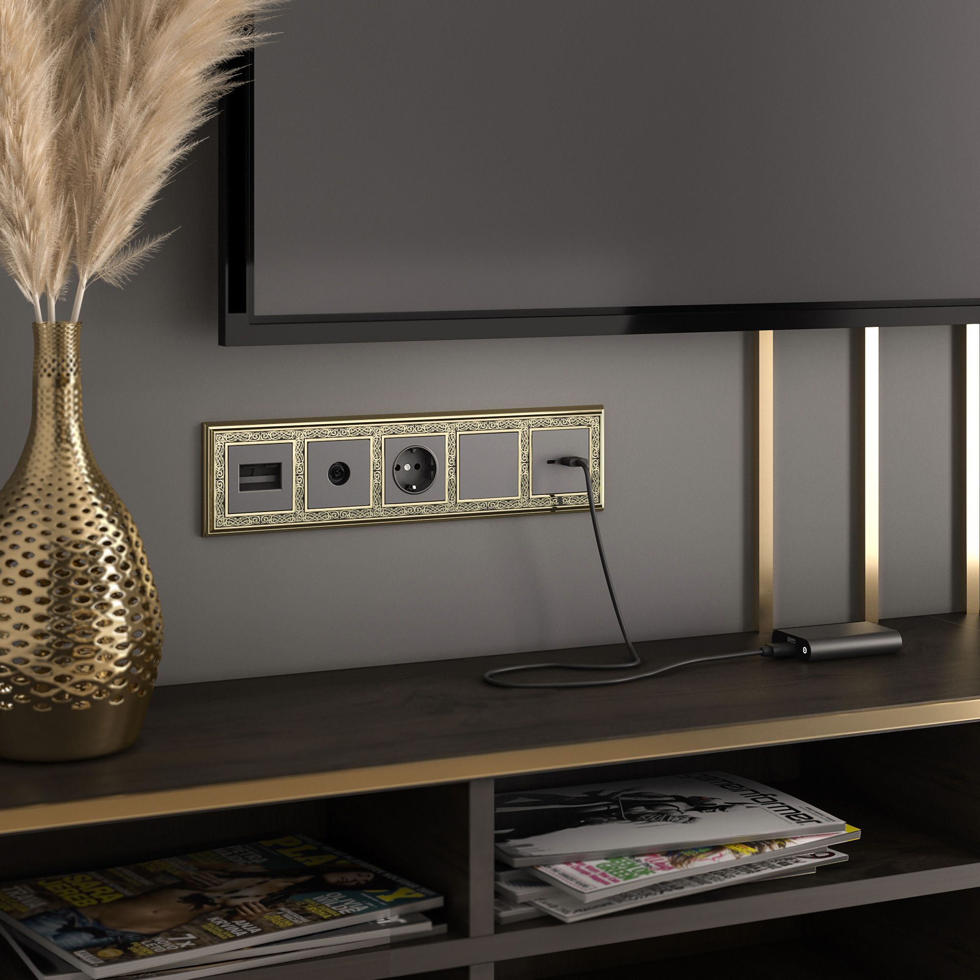Рамка на 5 постов (золото/черный) WL77-Frame-05